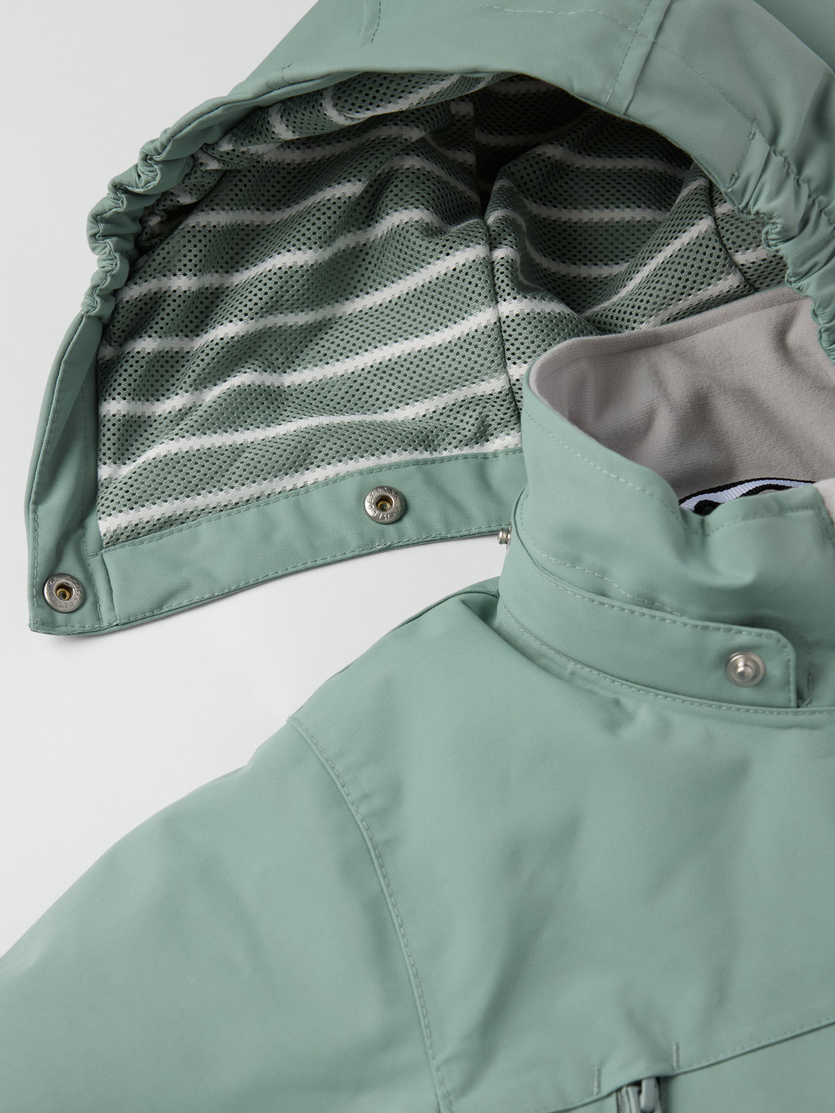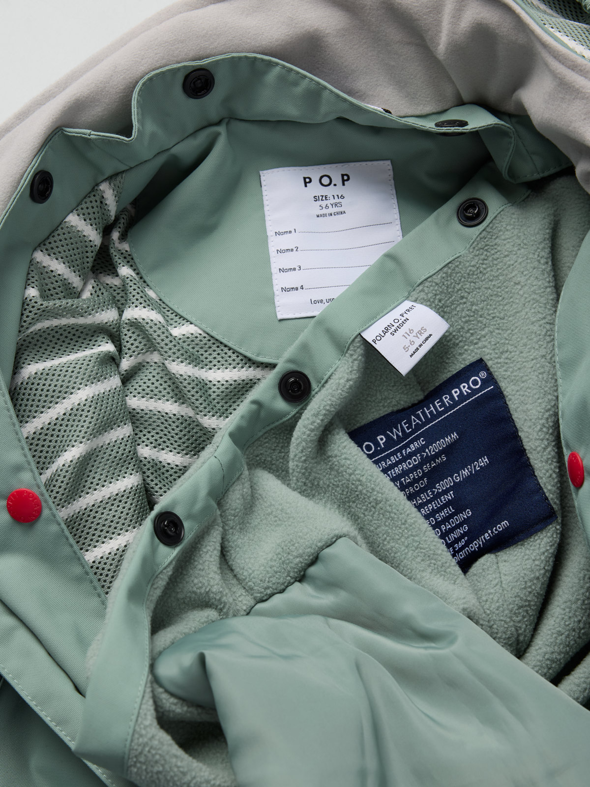 • Contrasting top button on the inside makes it easy to attach the fleece lining