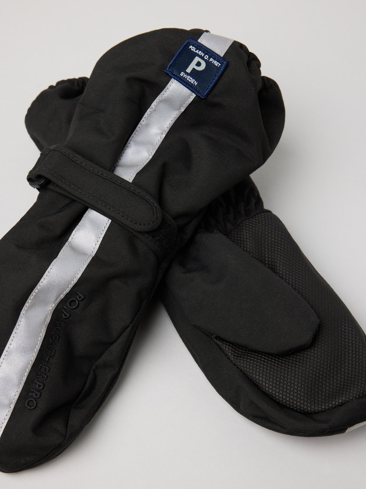 The mittens have a soft fleece lining and a pre-shaped fit for greater freedom of movement. The long and extra wide shaft makes the mittens easy to put on, and the adjustable wrist strap allows for the perfect fit and helps to keep them in place. The mittens have powerful reflectors on the upper side and a grip-friendly surface on the palms.