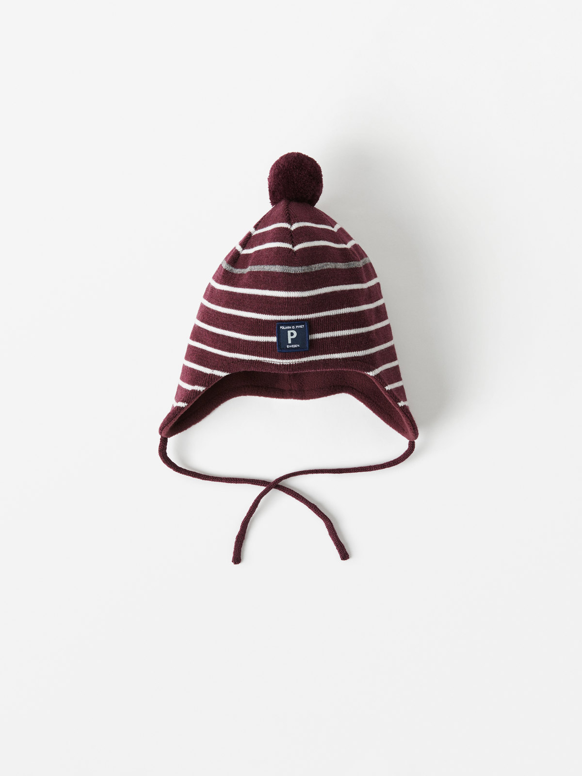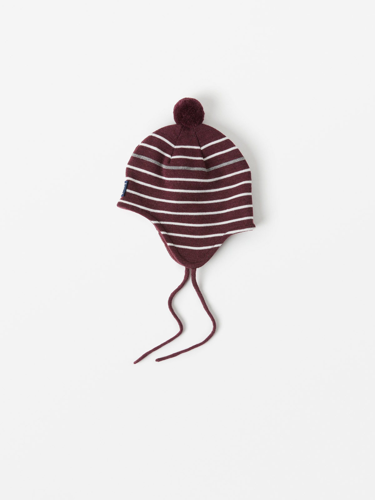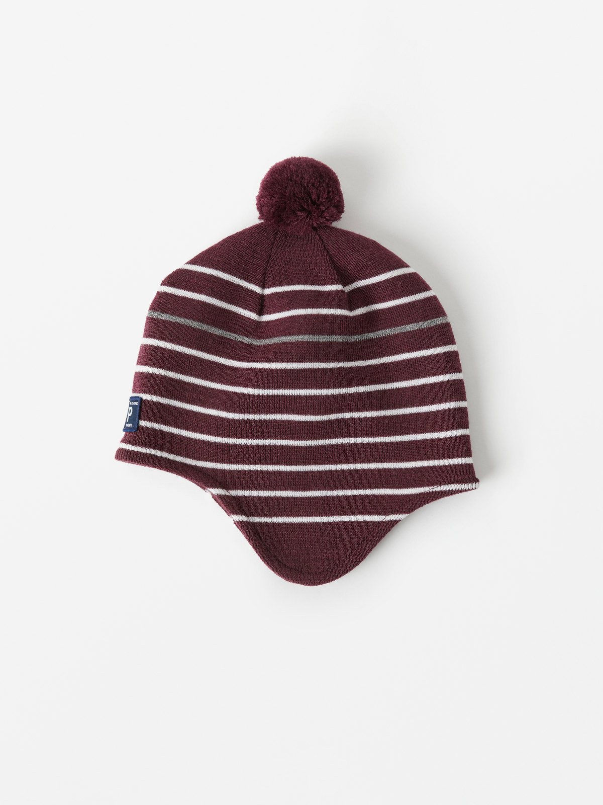 Striped helmet hat in cozy wool blend. The windproof hat has a soft, comfy fleece lining and goes down over the ears. The tie strings under the chin help to keep the hat in place. Size 52/54 is without ties. Wool retains warmth even in wet conditions.