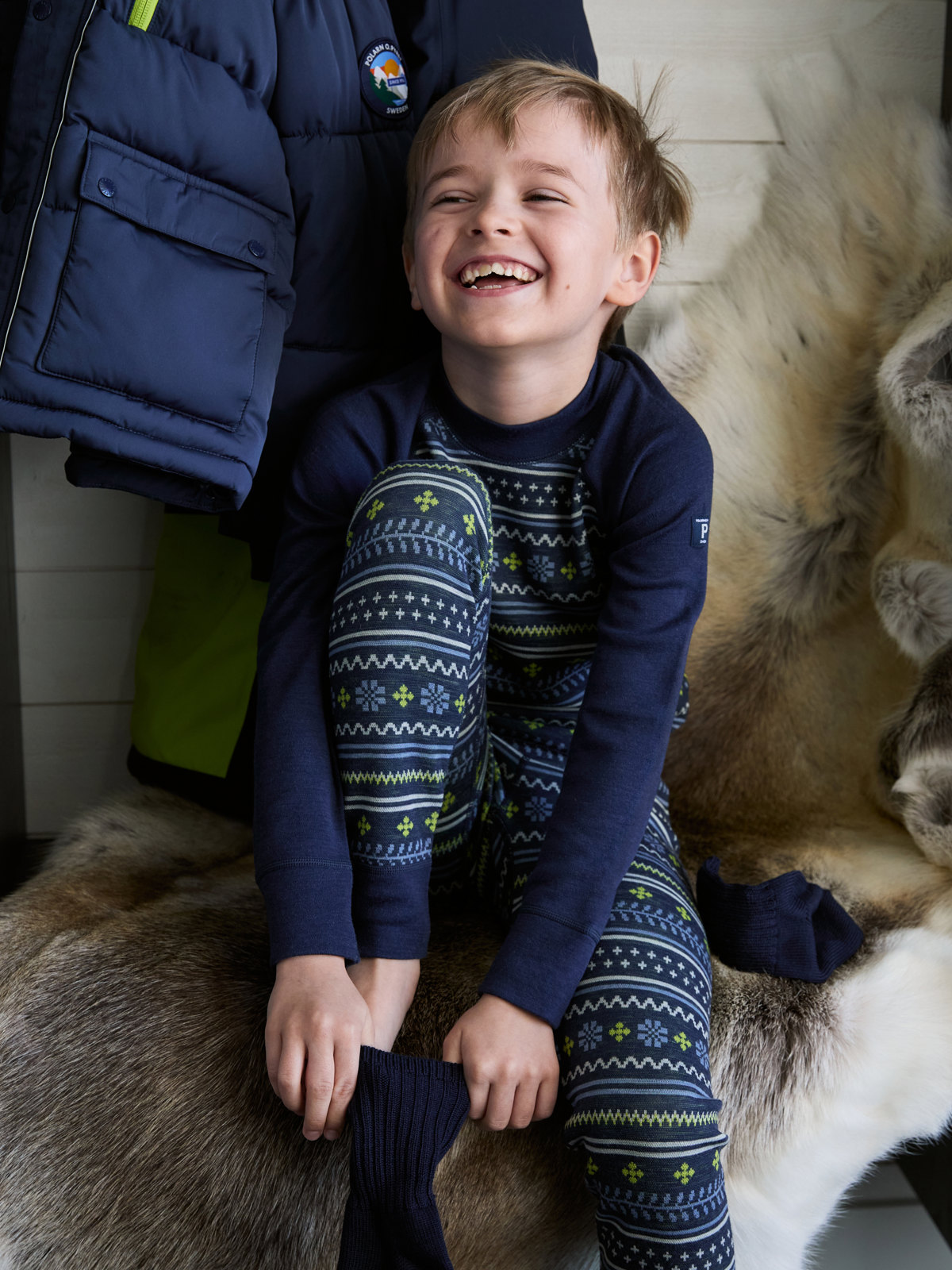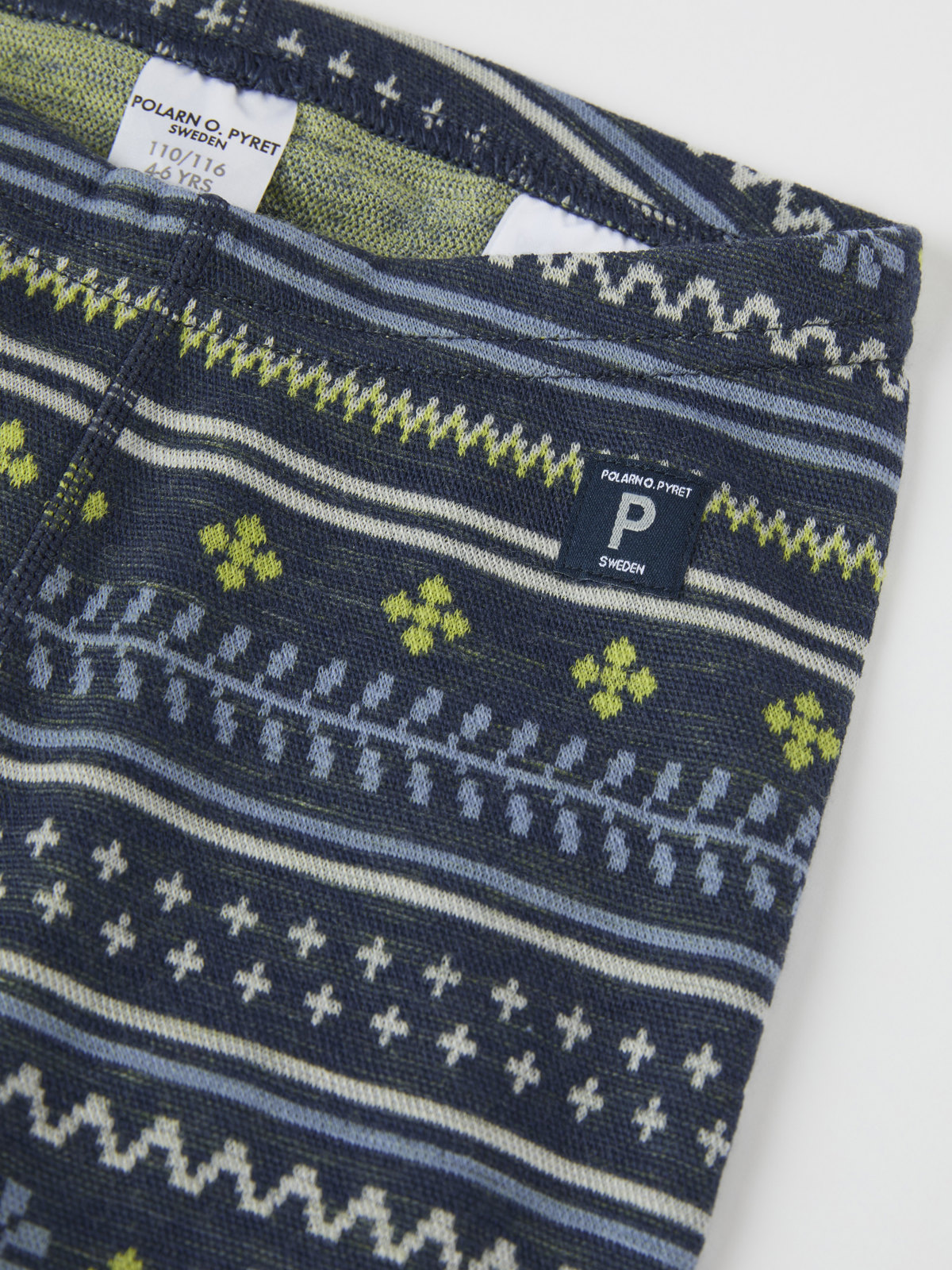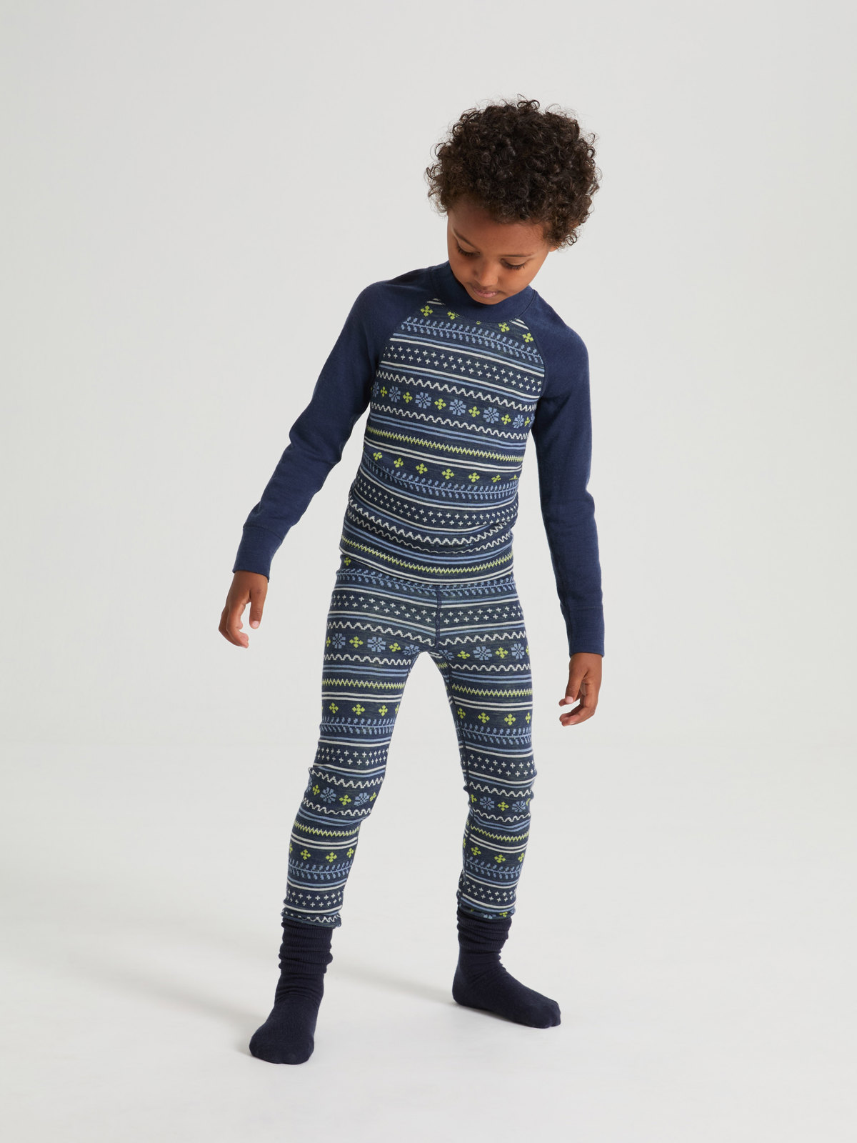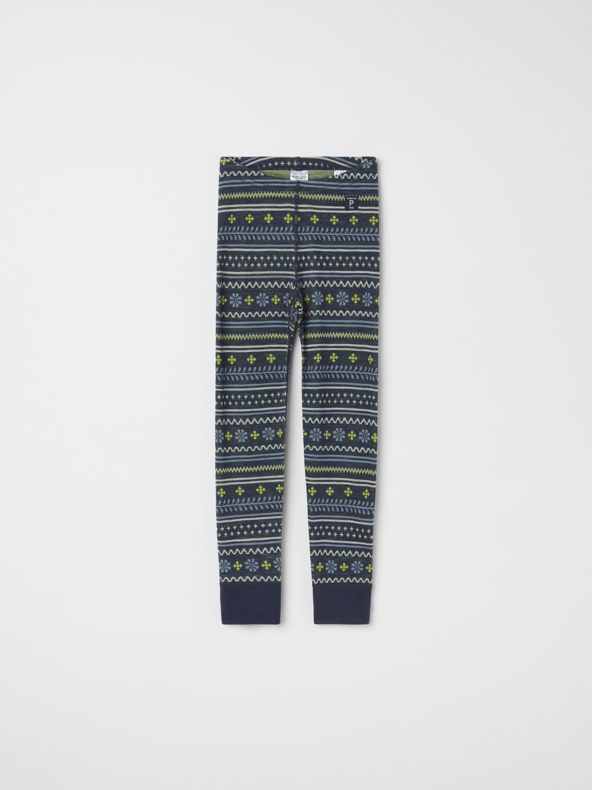 Jacquard print leggings in soft and cozy merino wool. A perfect base layer under our outerwear!