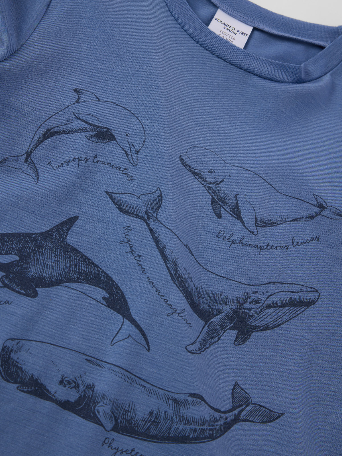 T-shirt in a soft, comfortable blend of wool and recycled polyester – ideal for every adventure! Wool keeps your child warm and helps regulate body temperature, even when damp, while polyester wicks away moisture.