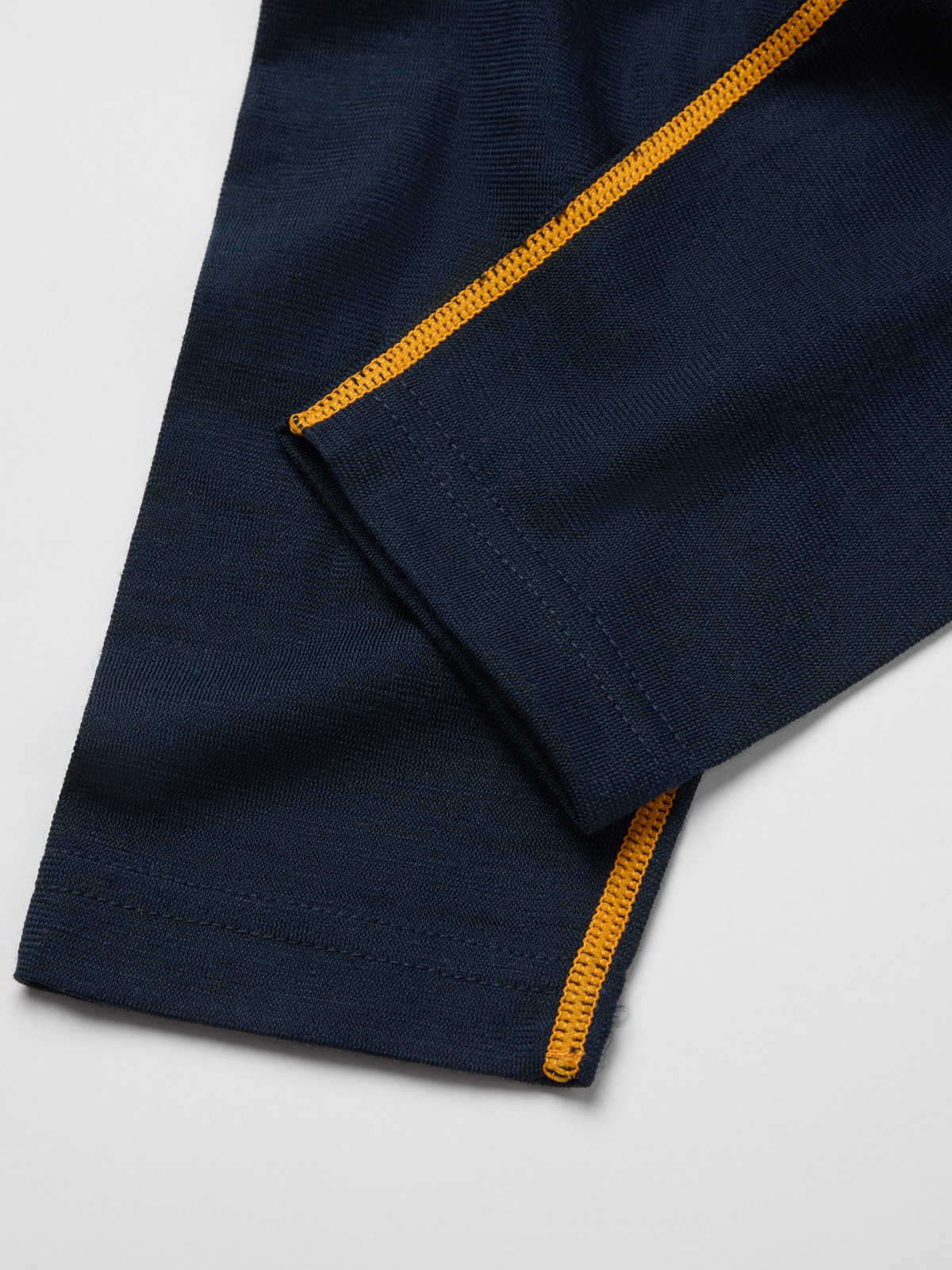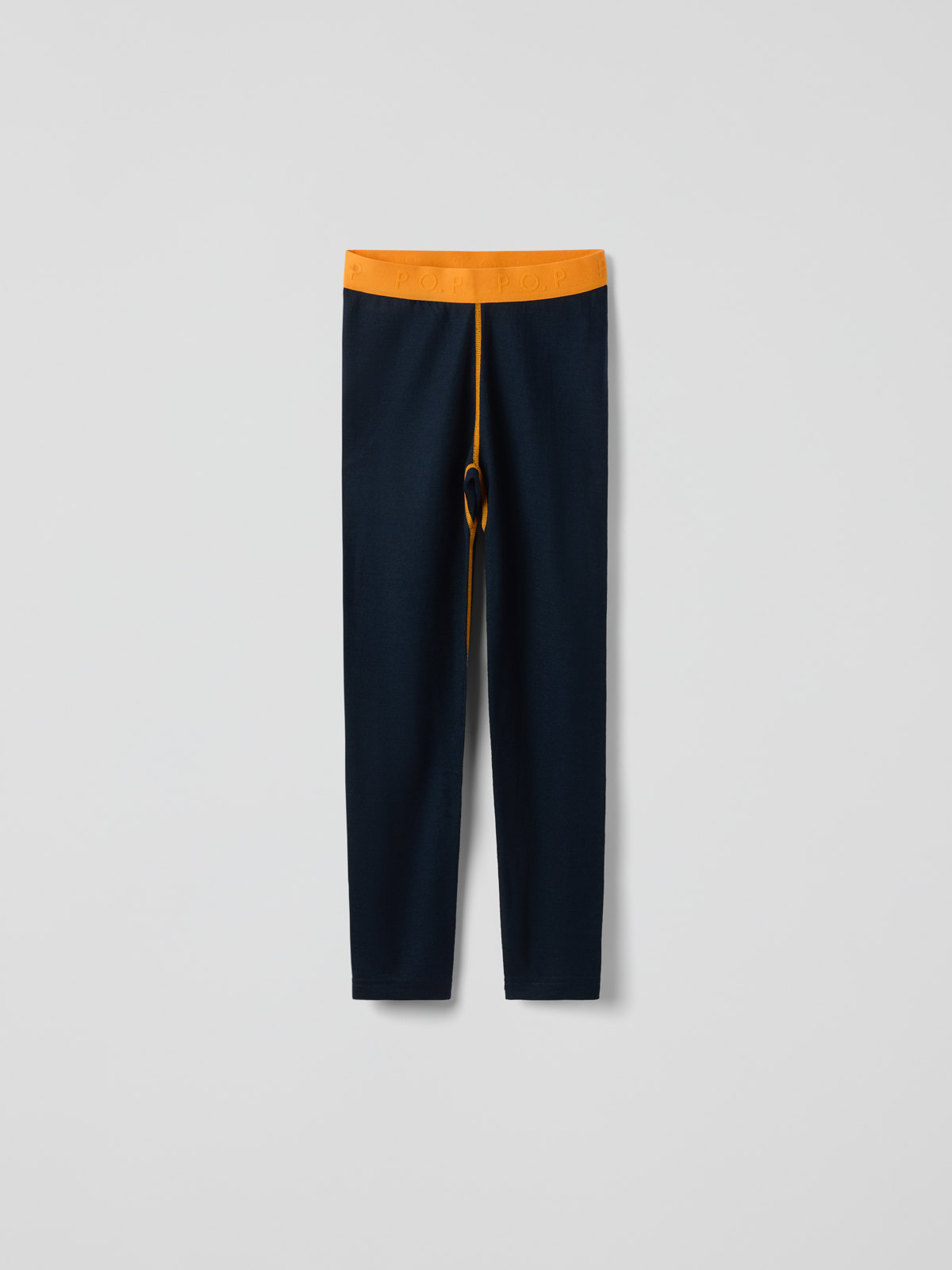 Trousers made from a soft and warming merino and polyester blend with contrast-coloured seams and waistband – perfect as a first layer next to the skin. Merino wool keeps you warm even when wet and helps regulate body temperature, and the polyester wicks moisture away from the body. The trousers are sewn with extra soft seams and pair perfectly with the matching top as a base layer on cold winter days or for active outings.