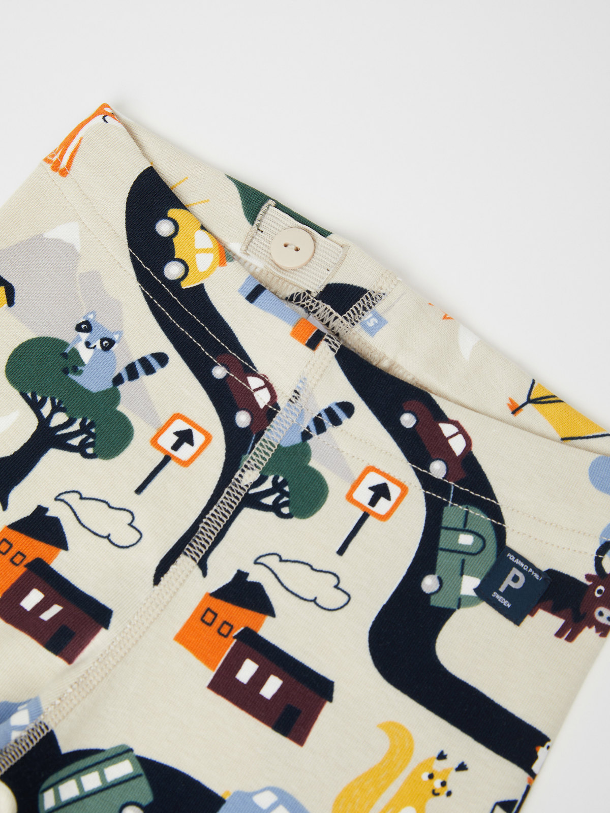 Soft and comfy pants in organic cotton with an allover print. The pants have contrasting ankle cuffs and an adjustable waist with buttonhole elastic.