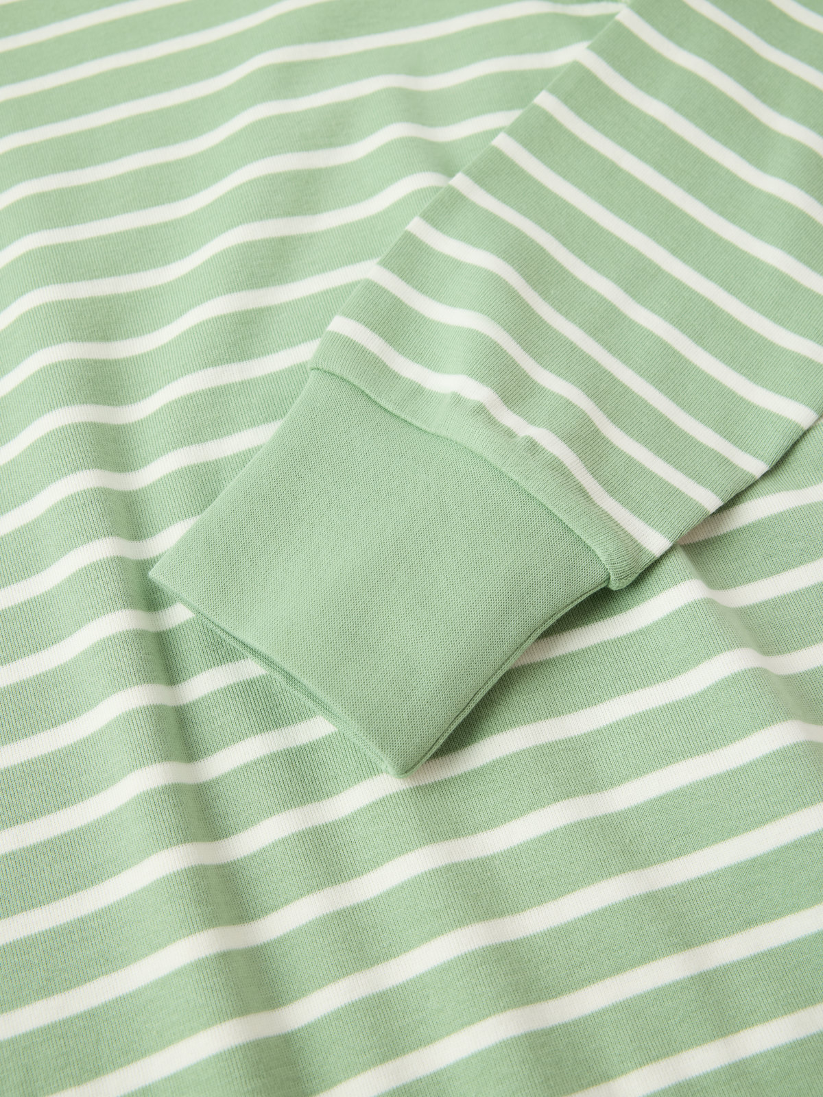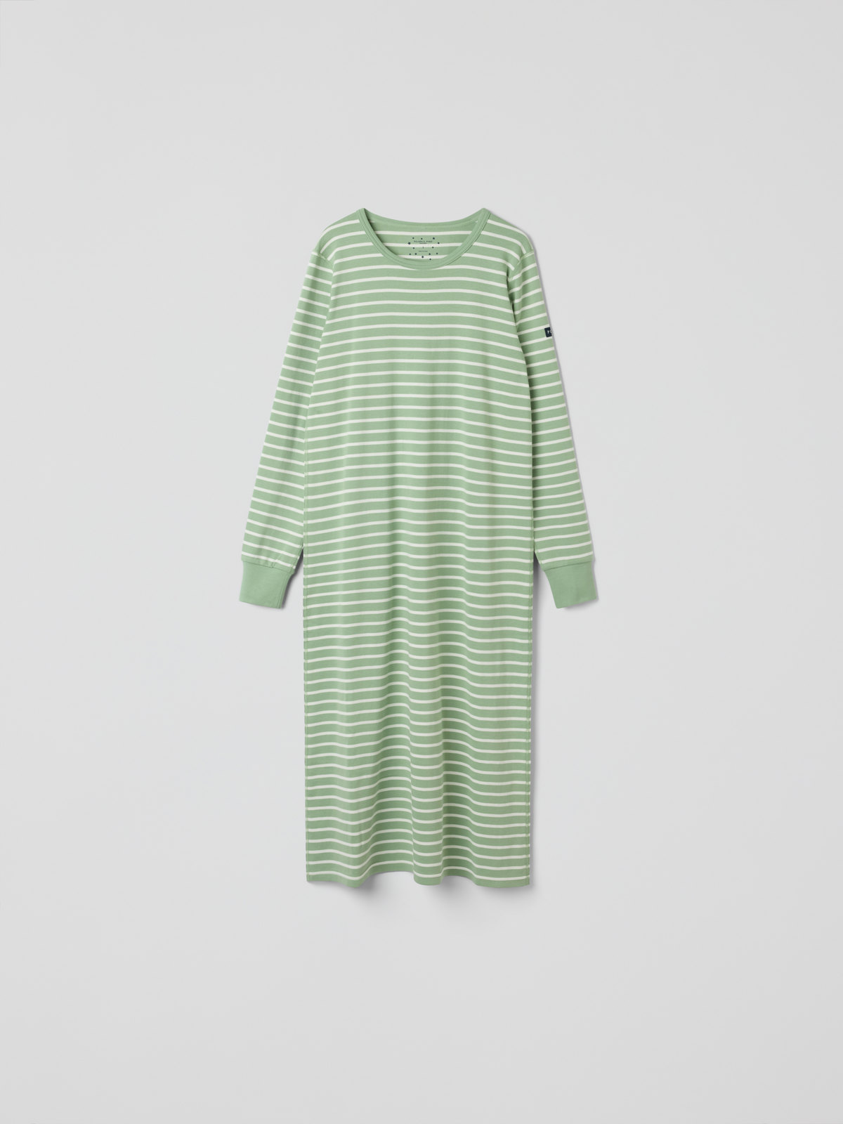 A soft and comfy nightgown in 100% organic cotton for adults. This nightgown features our classic stripes and soft cuffs.