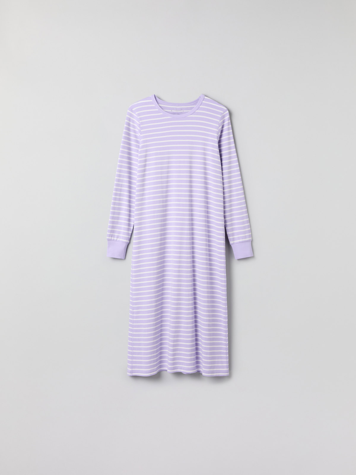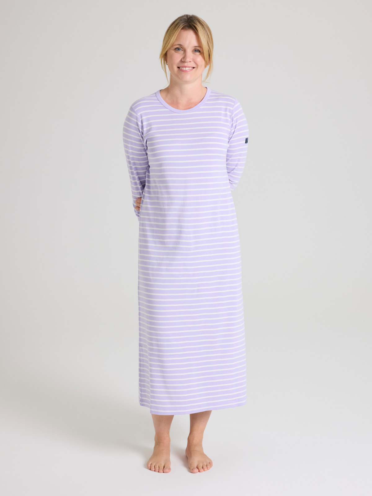 Striped nightdress in 100% soft organic cotton for adults – a classic to love for years to come. The nightdress has soft cuffs at the sleeve ends for a comfortable fit.