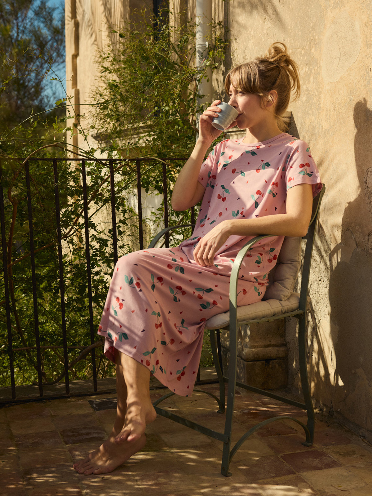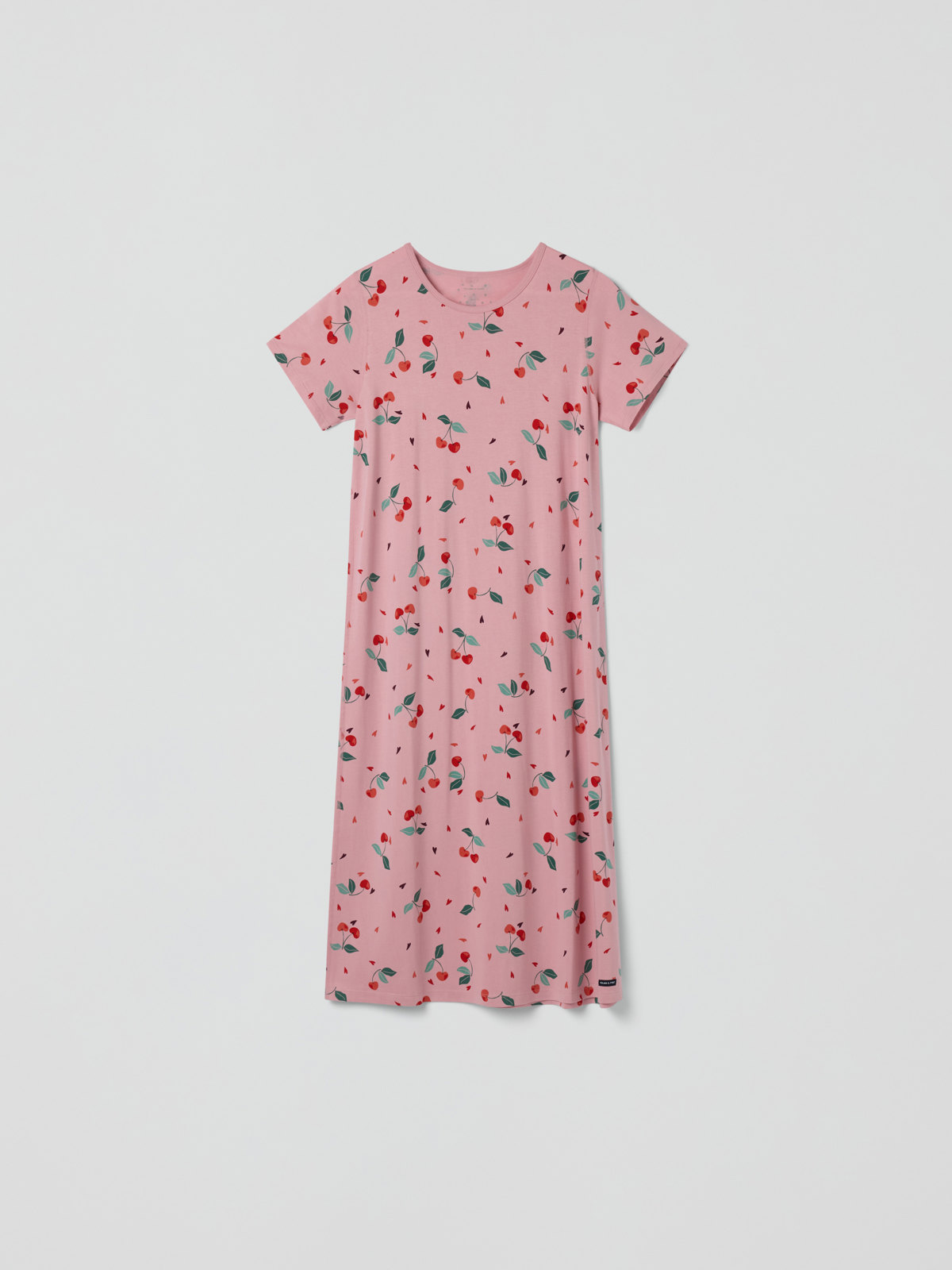 Short-sleeved nightgown in thin and cool Tencel™ lyocell jersey for adults. The nightgown has extra soft seams that are gentle on the skin, and an allover cherry and heart print.