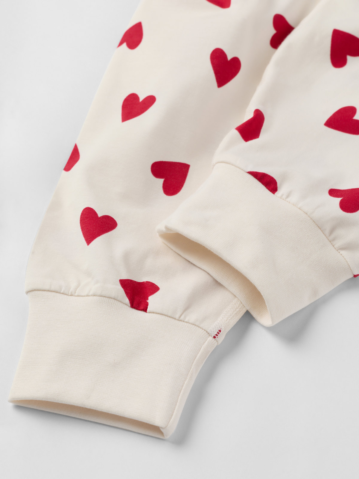 Soft and comfy two-piece pyjamas in organic cotton for adults. The pyjamas have extra soft, flatlock seams and a lovely heart print.