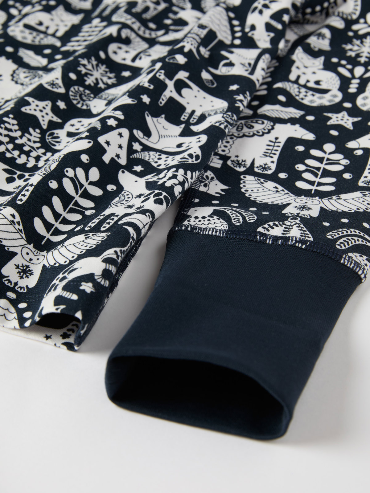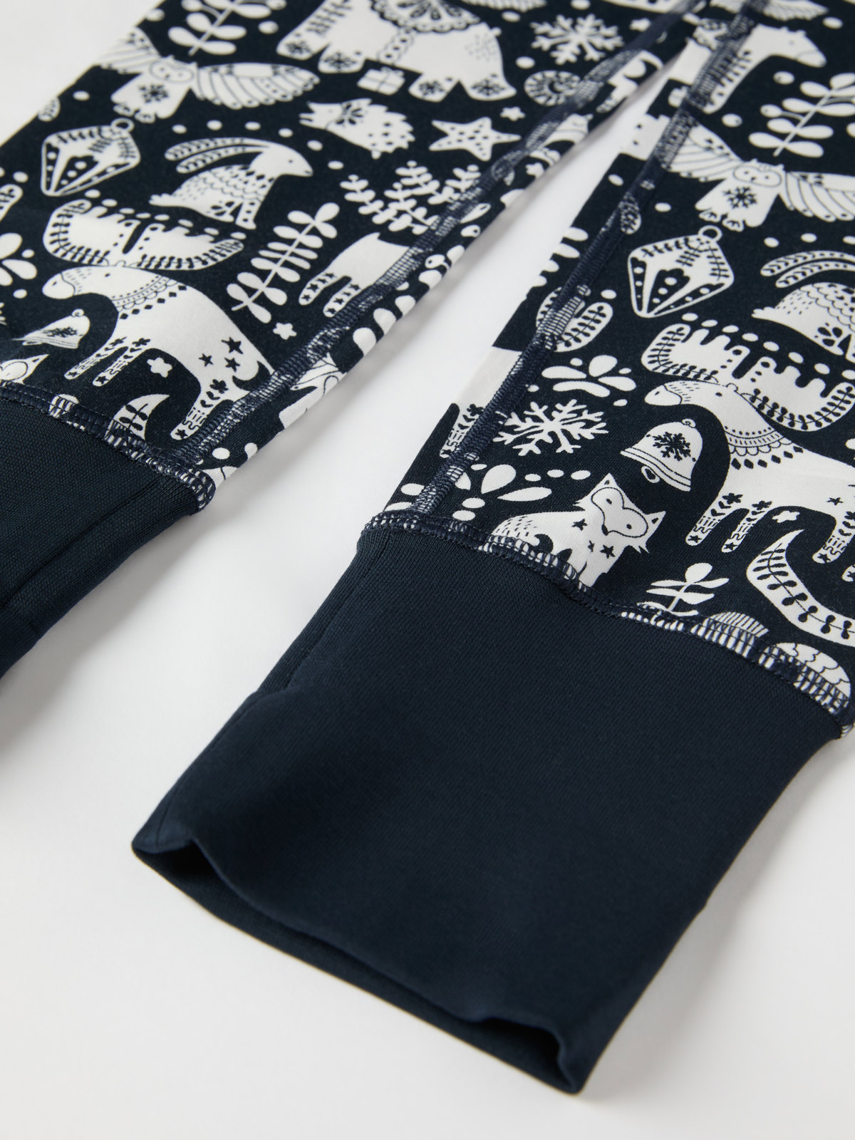 Soft and comfy two-piece pyjamas in organic cotton. The pyjamas have extra soft, flatlock seams and a lovely Christmas print.