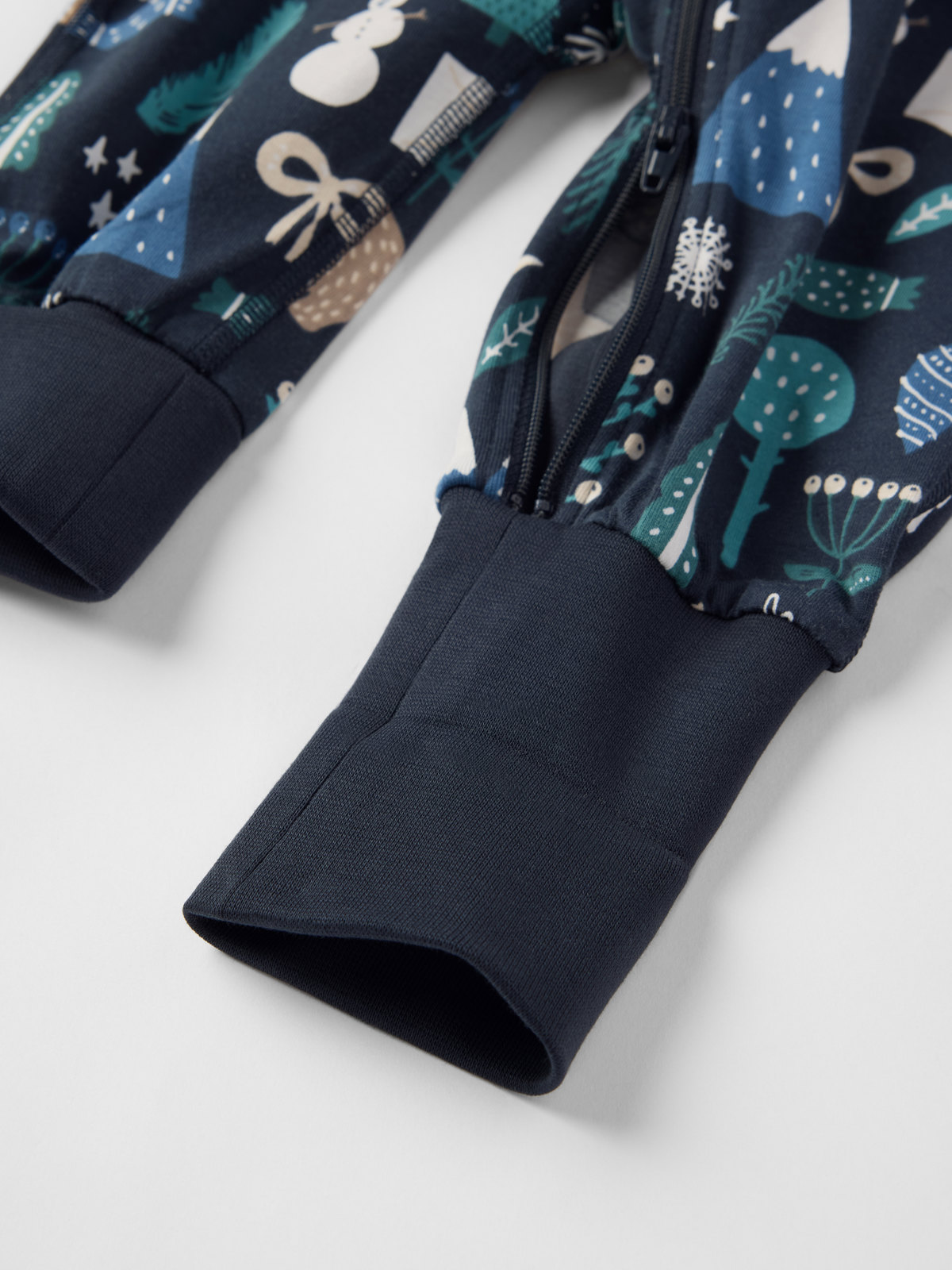 All-in-one pyjamas in soft, organic cotton, with extra soft, flatlock seams that are gentle on sensitive skin. The cuffs at the sleeve and legs are extra long and can be folded down as the child grows. The long, two-way neck-to-ankle zipper facilitates dressing.