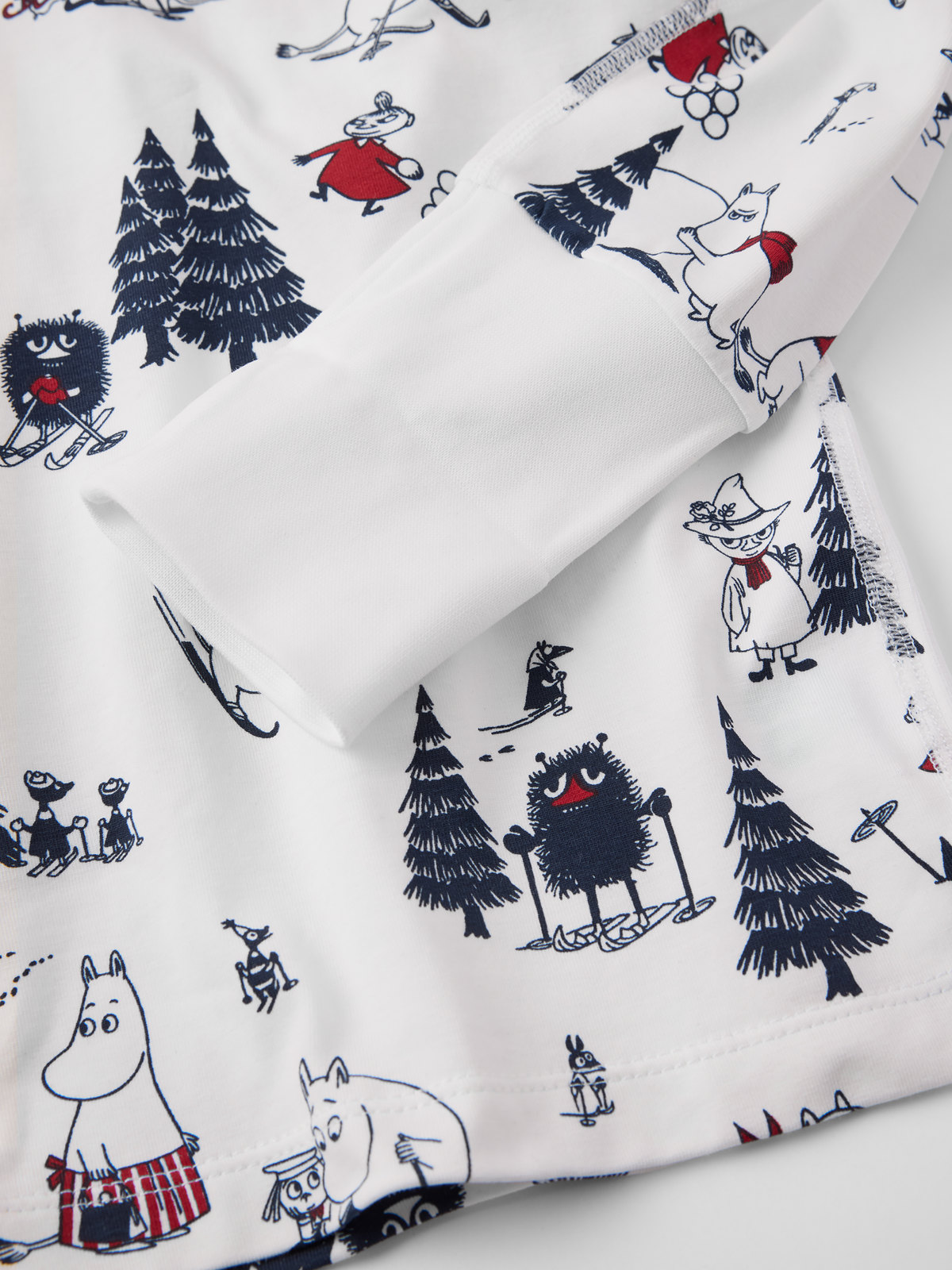 Two-piece pyjama in soft organic cotton – part of our beloved design collaboration celebrating Moomin’s 80th anniversary in 2025. These pyjamas are fully printed with illustrations from Tove Jansson’s Moomin stories. The top features extra-long sleeve cuffs that can be folded up or down. The trousers have an elastic waistband and extra-long leg cuffs.