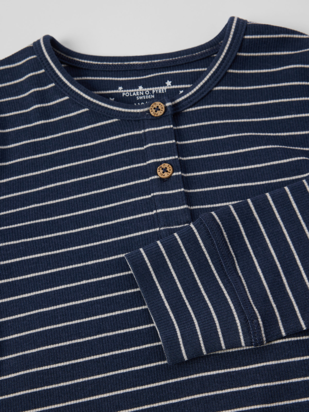 Striped two-piece pyjamas in lightweight, cool jersey made from Tencel™ lyocell and organic cotton, crafted with extra-soft seams for maximum comfort. The top features a short button placket at the front, while the trousers have cuffs at the ankles for a perfect fit.