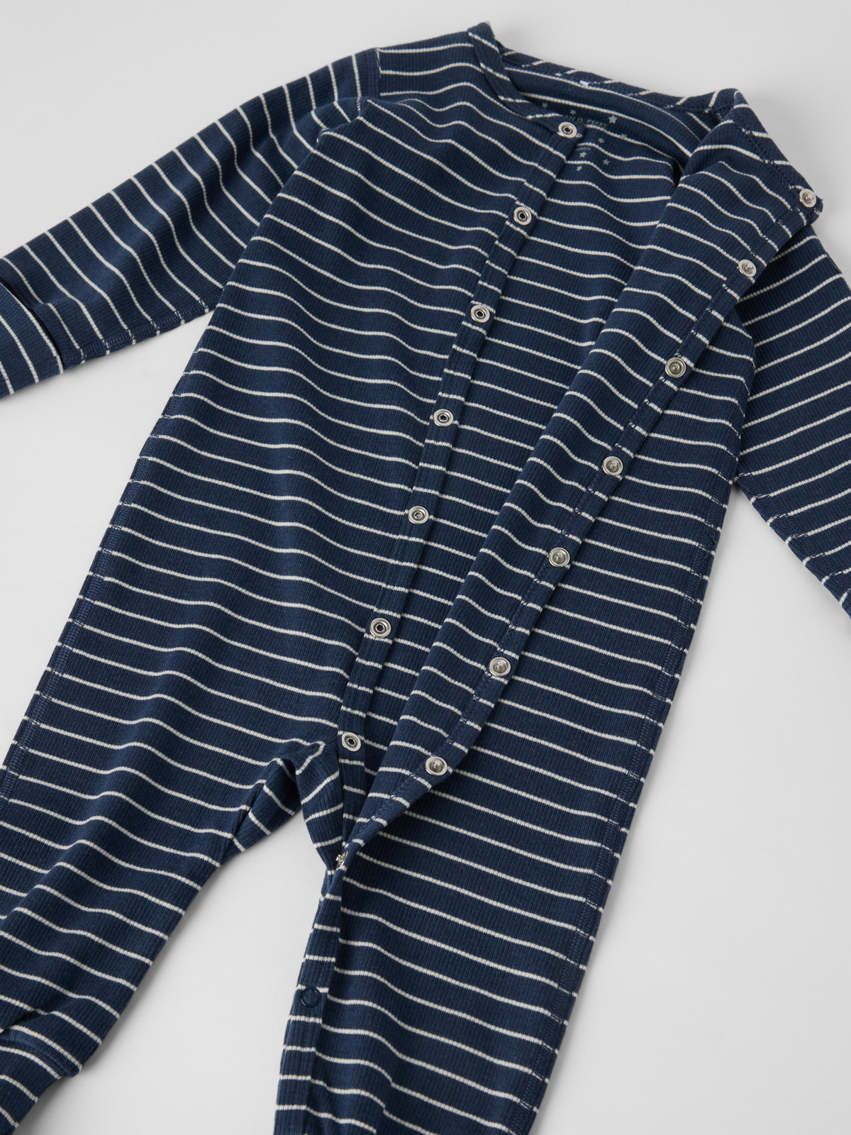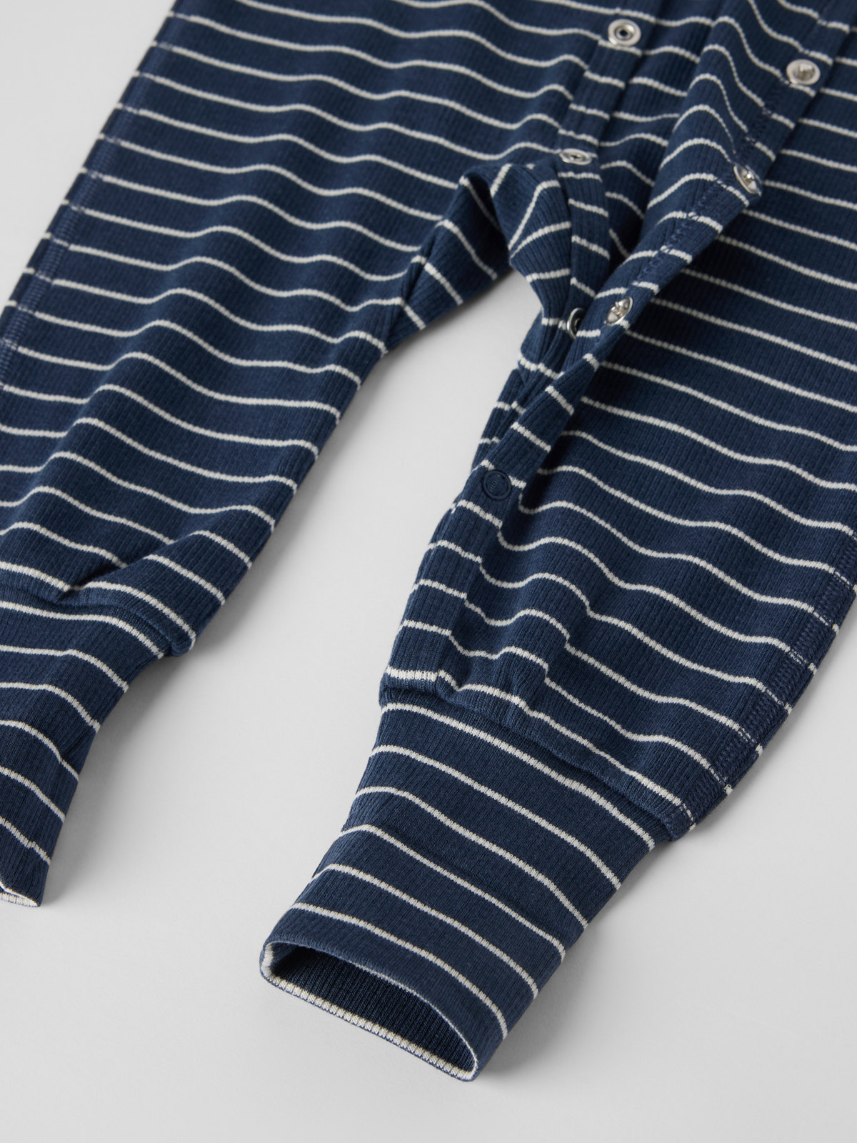 Striped sleepsuit in lightweight, cool jersey made from Tencel™ lyocell and organic cotton for baby, crafted with extra-soft seams for maximum comfort. The cuffs at the sleeves and legs are extra long and can be folded down as your child grows. Popper fastenings from neck to ankle make changing easy.