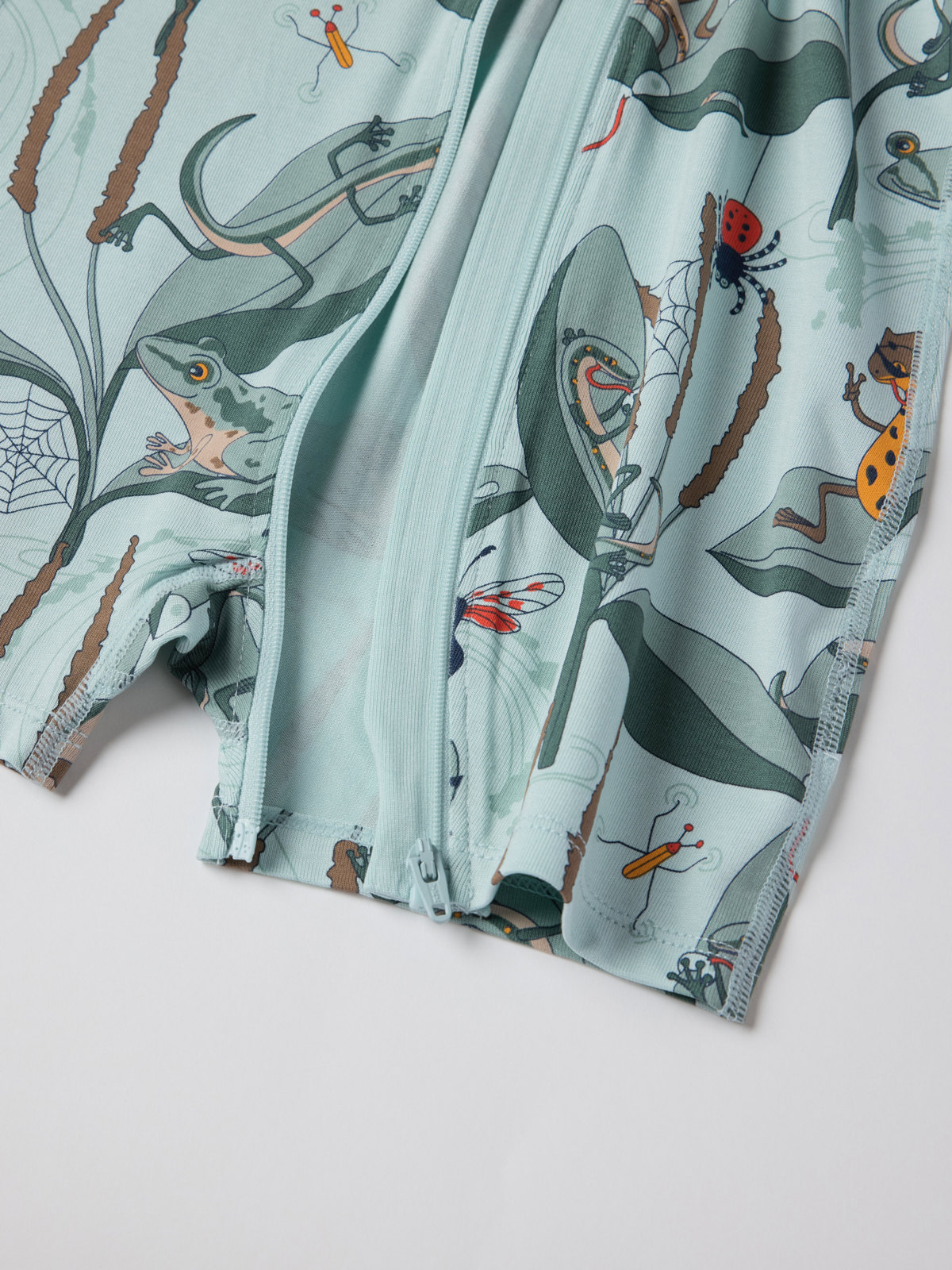 Short onesie pyjamas made of thin and cool Tencel™ lyocell jersey – perfect for warm nights! The pyjamas have extra-soft, flatlock seams that are gentle on sensitive skin. It features an allover lizard print.