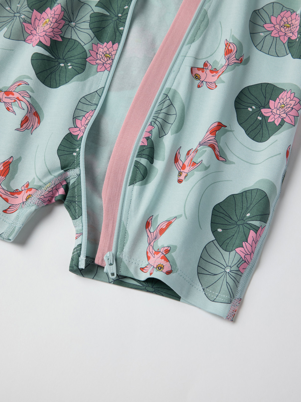Short onesie pyjamas made of thin and cool Tencel™ lyocell jersey – perfect for warm nights! The pyjamas have extra-soft, flatlock seams that are gentle on sensitive skin. They feature a delightful allover sea print.