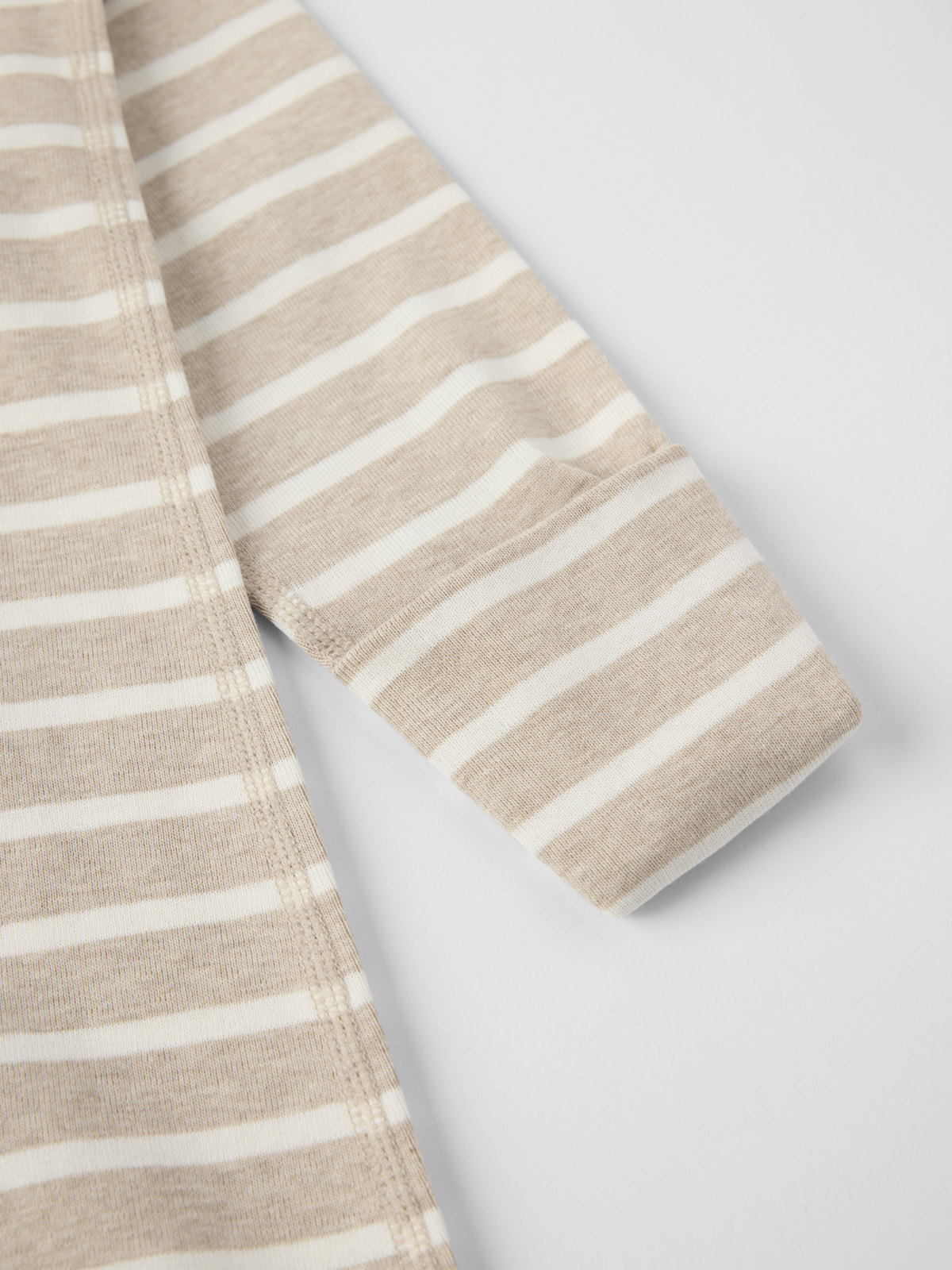 Sleeping bag in thin cotton jersey – cosy in both the stroller and bed! The sleeping bag is long-sleeved and sewn together at the bottom. It features a long zipper making it easy to get on and off. The sleeping bag is stitched with extra soft seams that won’t irritate sensitive skin, and soft cuffs at the sleeves ensure a comfortable fit.