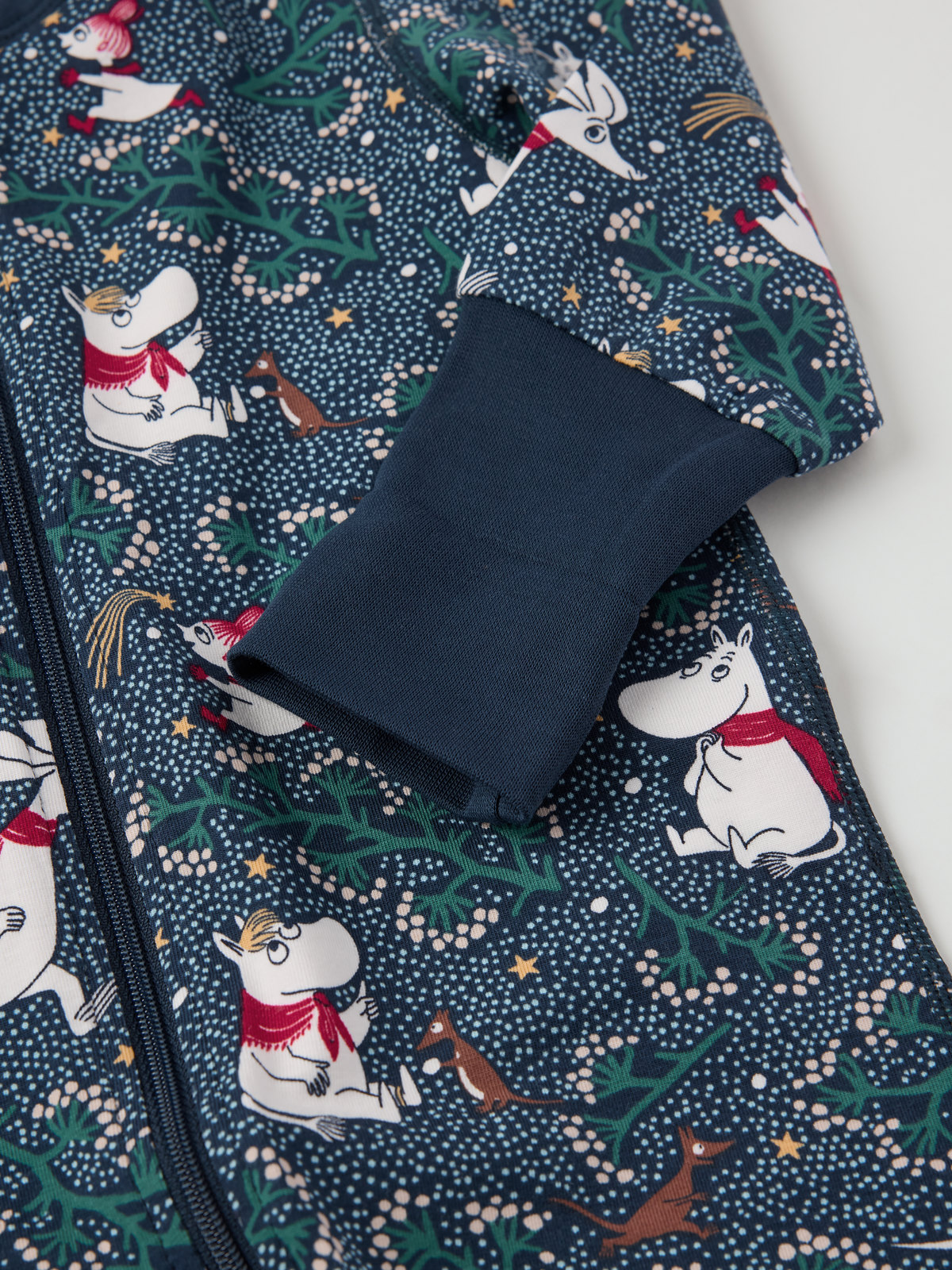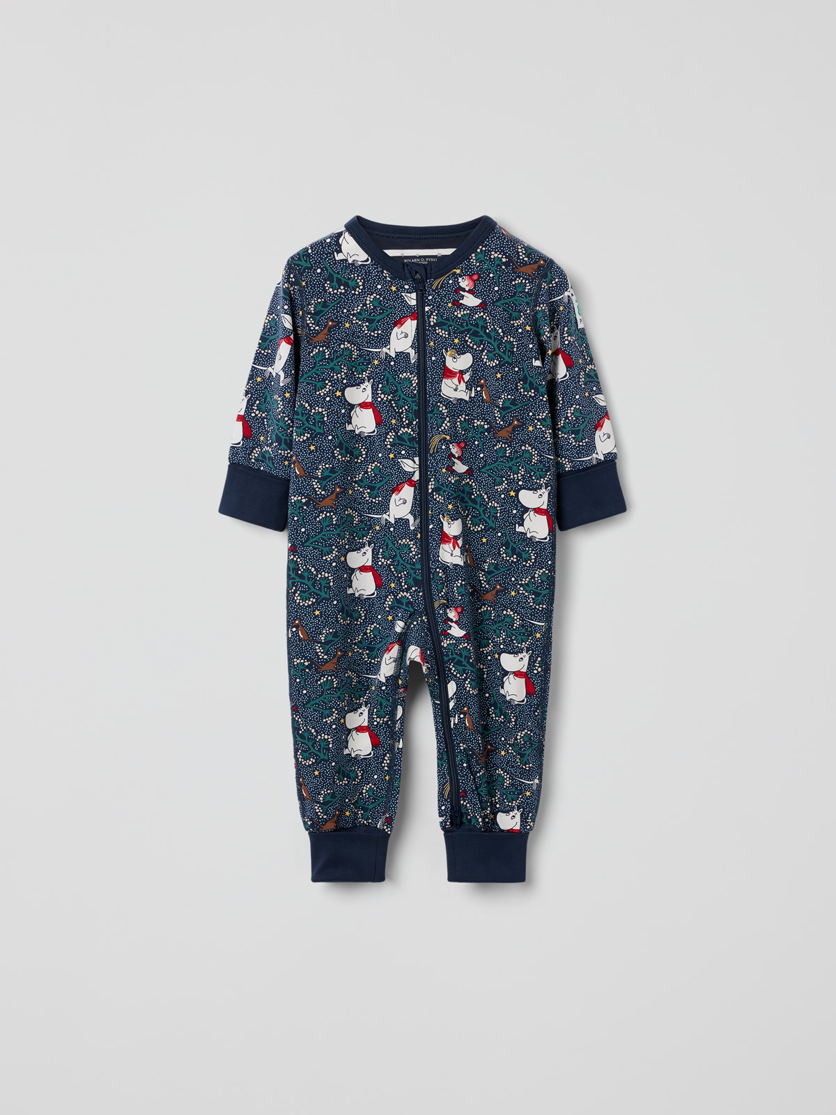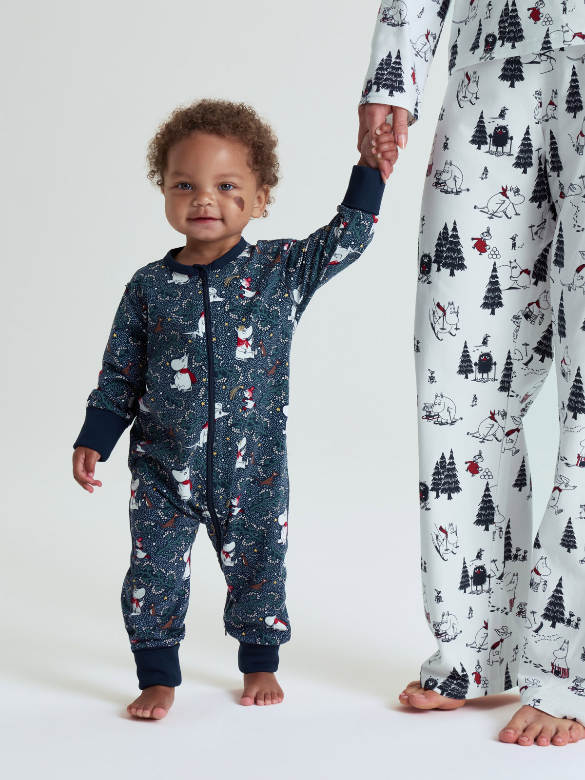 Sleepsuit in soft organic cotton – part of our beloved design collaboration celebrating Moomin’s 80th anniversary in 2025. This sleepsuit is fully printed with illustrations from Tove Jansson’s Moomin stories. The sleeve and leg cuffs are extra-long and can be folded down as the child grows. The long zipper from neck to leg can be opened from both the top and bottom for easier dressing.