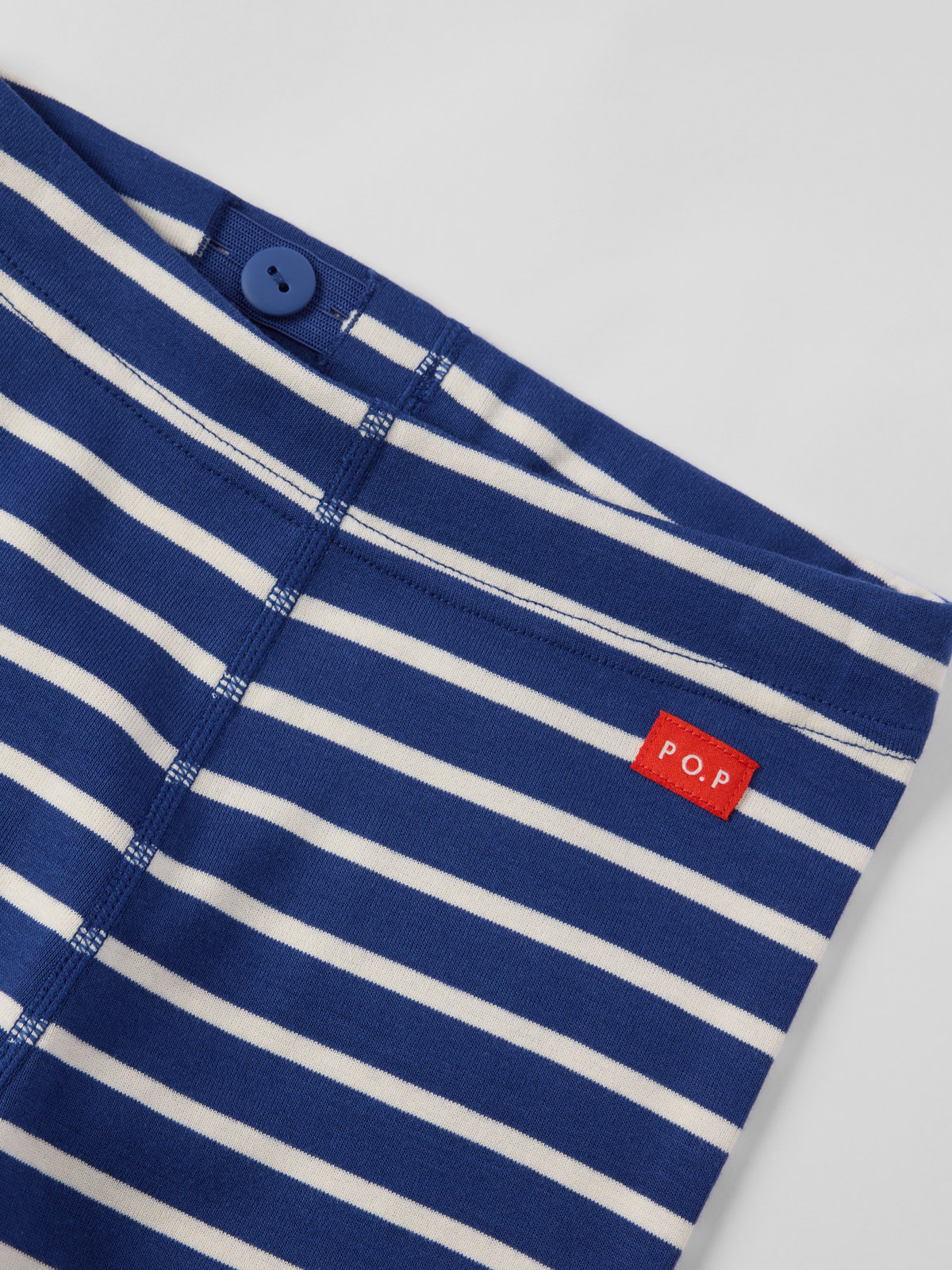 Ribbed jersey trousers in soft organic cotton for baby. The ideal everyday essential, perfect for both home and nursery! Features our classic stripe and an adjustable elastic waistband with buttonhole elastic. Finished with soft cuffs at the ankles.