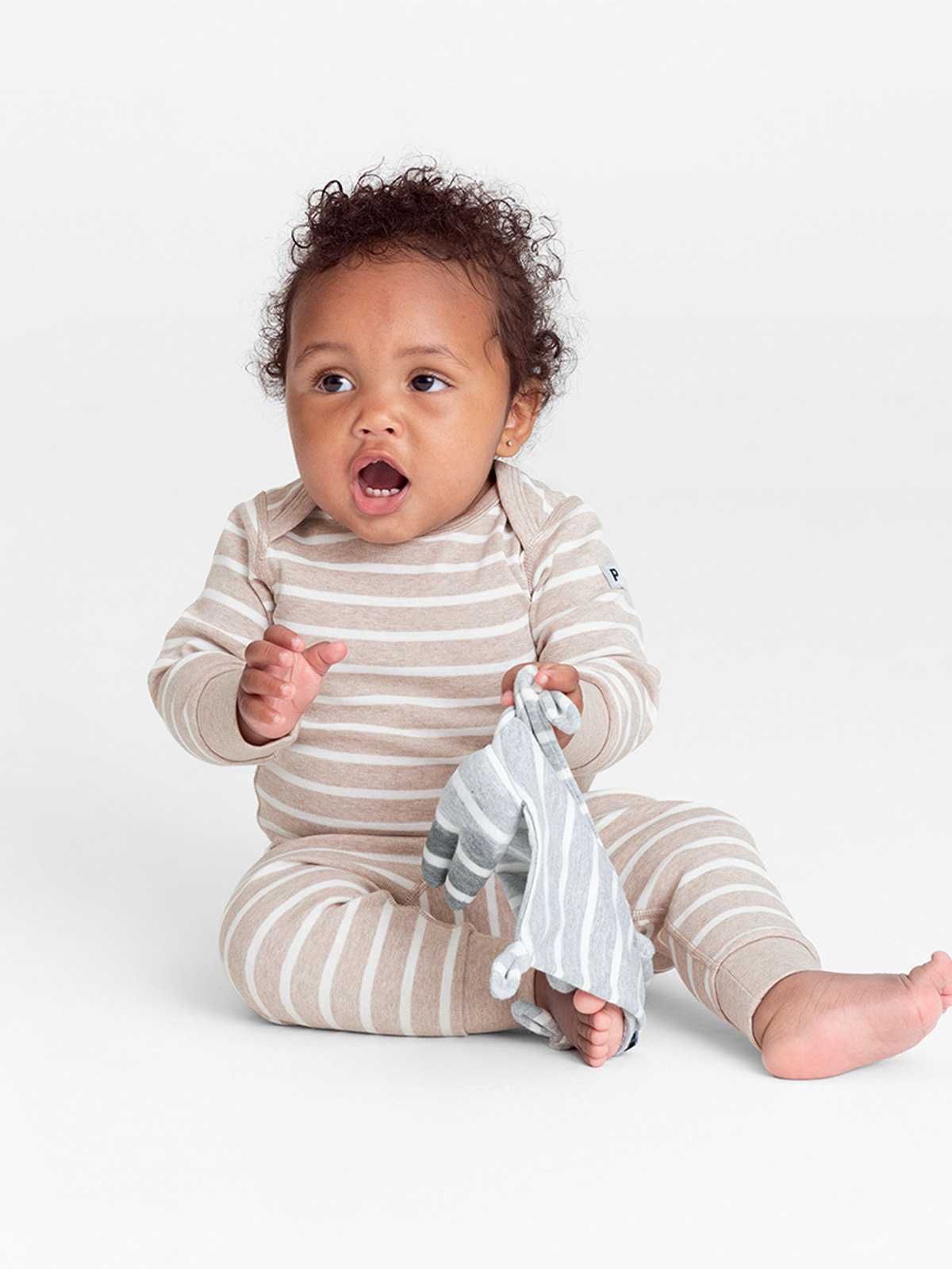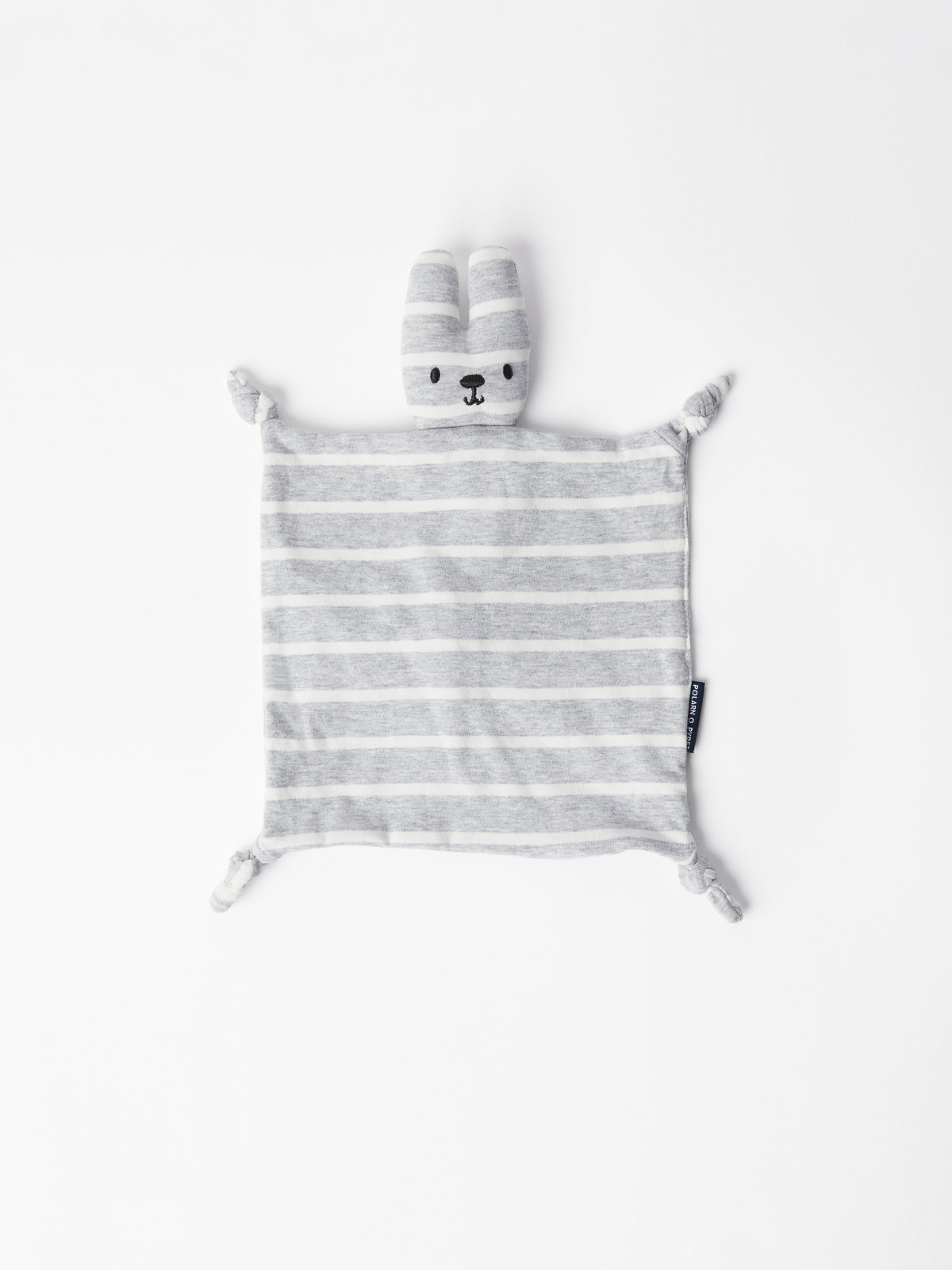 This soft and cuddly blanket featuring a cute little rabbit is sure to become a favorite. The blanket comes in our classic stripes, and is made of 100% organic cotton. The rabbit has a 100% recycled polyester filling.