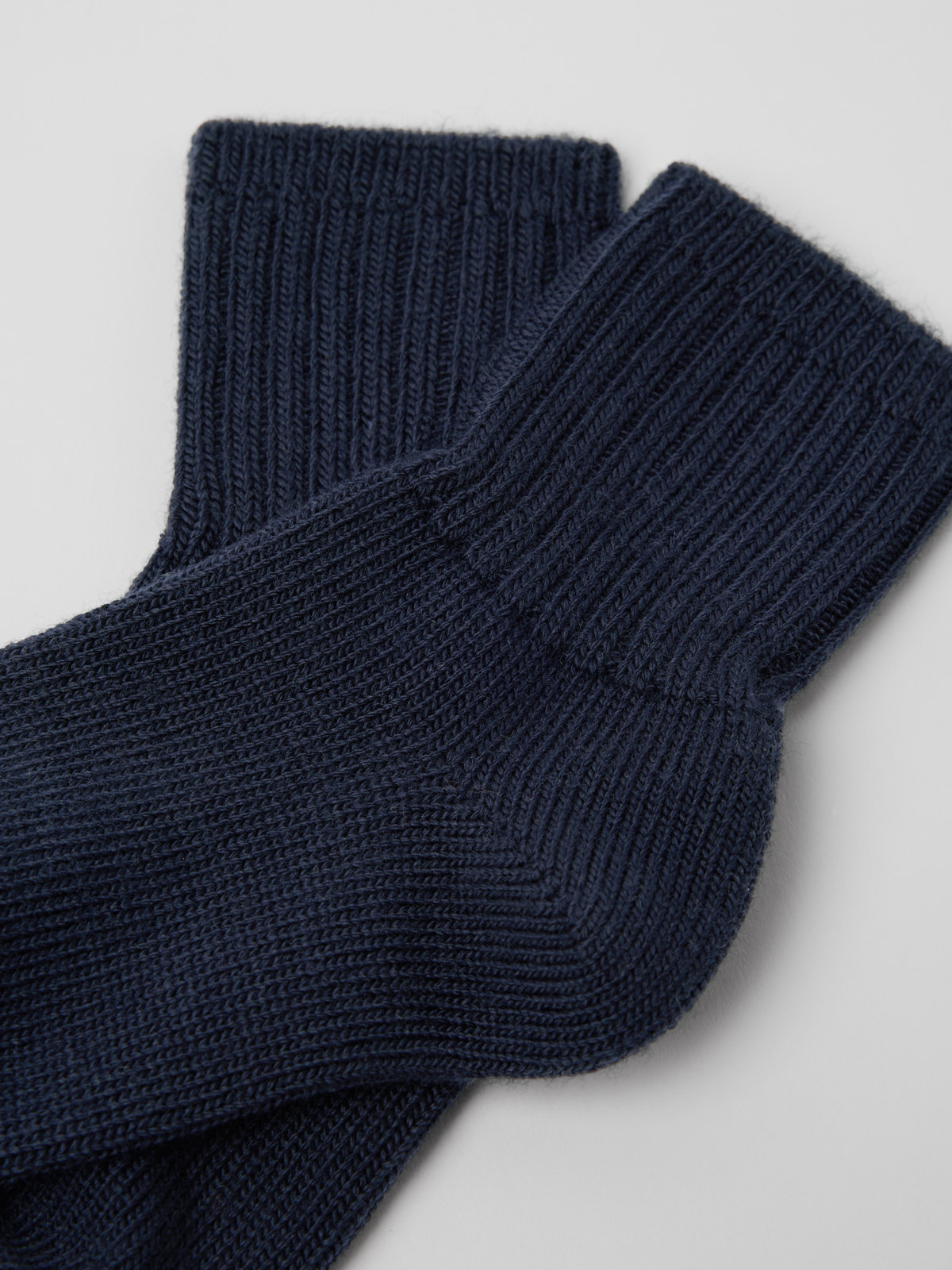 Thickly knitted socks in soft merino wool that keep little feet wonderfully warm – perfect as a second layer in boots, ski boots or skates! The socks have a long cuff that can be folded up or down for a comfortable fit and to help them stay in place.