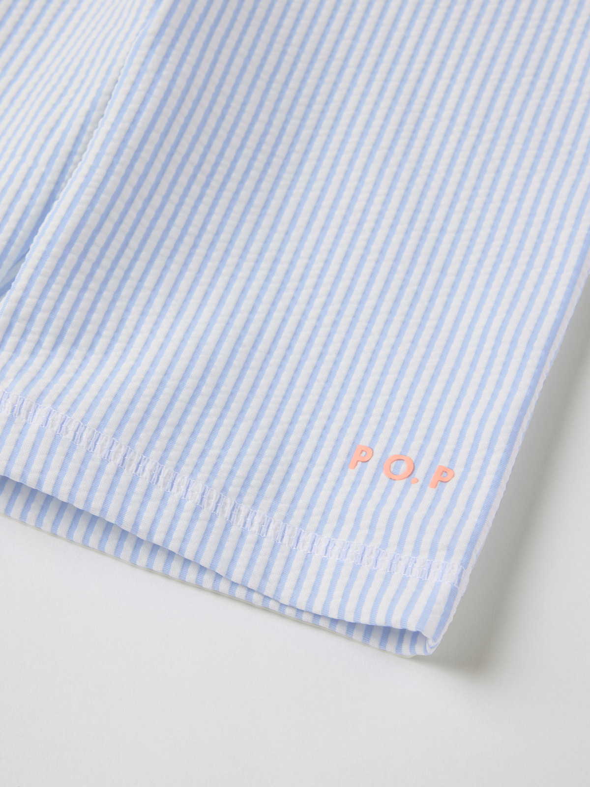UV shorts with UPF 50 made from soft and comfortable seersucker. The shorts have an elastic waistband and extra-soft seams that are gentle on the skin. Combine with the matching UV top!