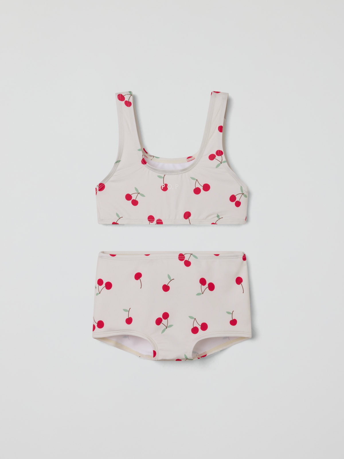 Bikini made from soft, comfortable recycled polyester. The bottoms feature a high waist and hipster fit, while the top has a straight cut and wide shoulder straps.