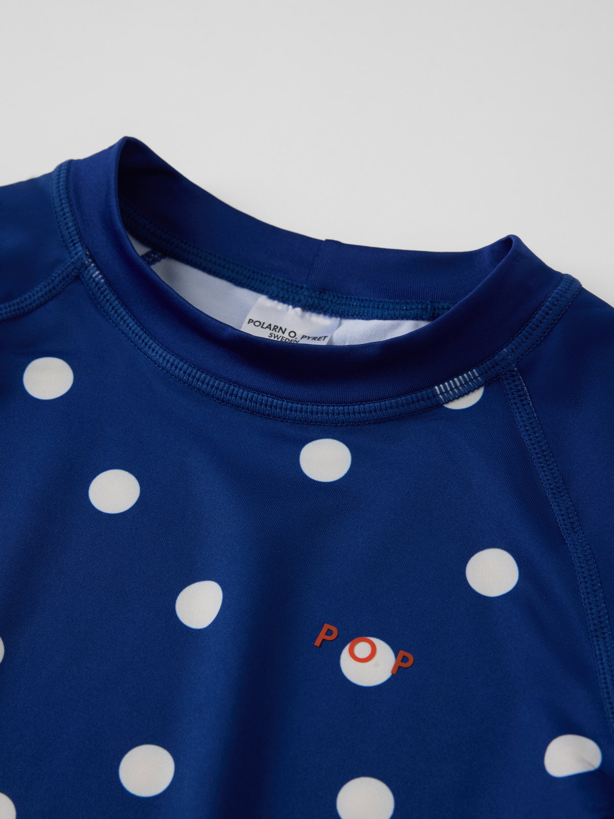 Long-sleeved UV top with dots, UPF 50, crafted from soft, comfortable recycled polyester. Features extra-soft seams for a gentle feel against the skin. Pair with matching UV trousers!