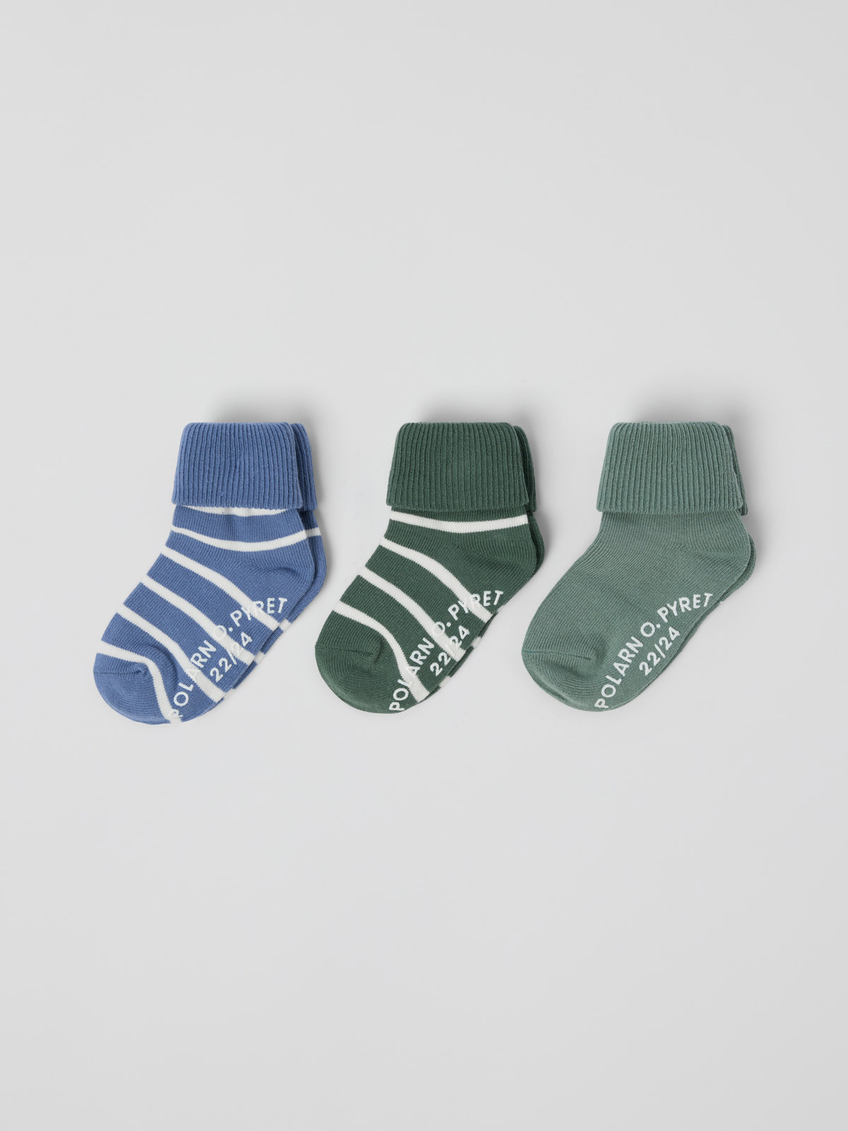 Stock up the sock drawer with this 3-pack of socks with anti-slip soles. The socks are made from soft organic cotton and have cuffs that can be folded up or down.
