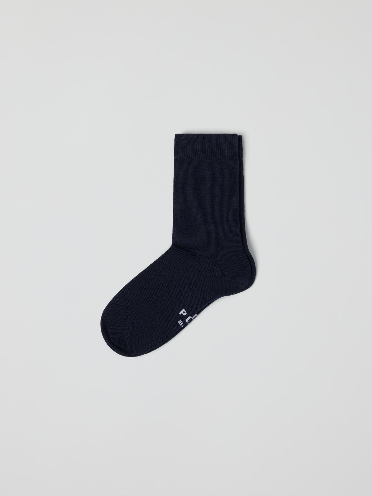 A pair of socks in thin merino wool that feels soft and cosy on little feet. The size is indicated on the arches. You can also write your child’s name on them so it’s easy to keep things in order!