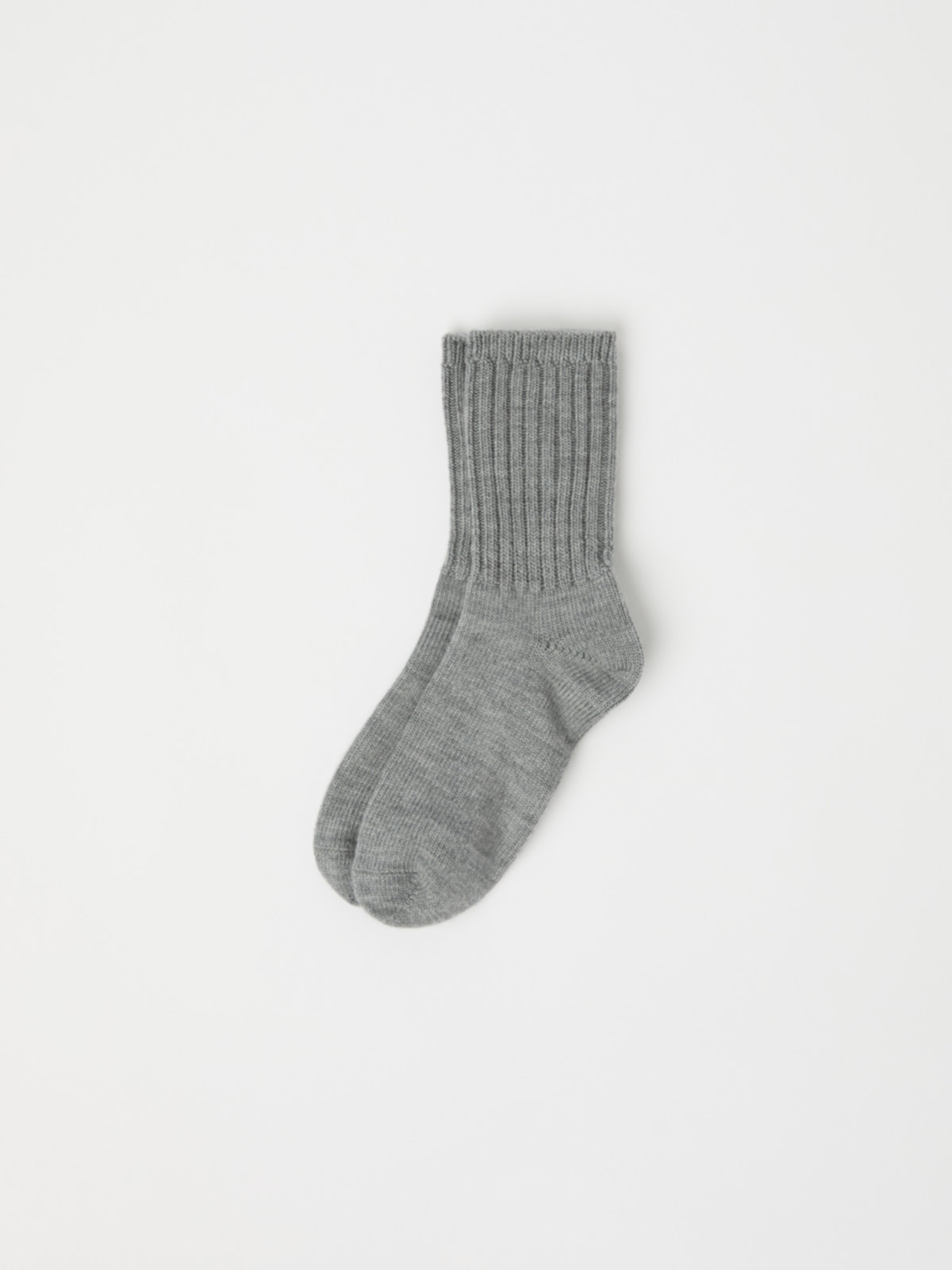 No more cold feet with these thick socks in warm merino wool. The socks have long, ribbed cuffs and the size is marked on the inside of the arches. You can also write your child's name on them. So it's easy to keep things in order!