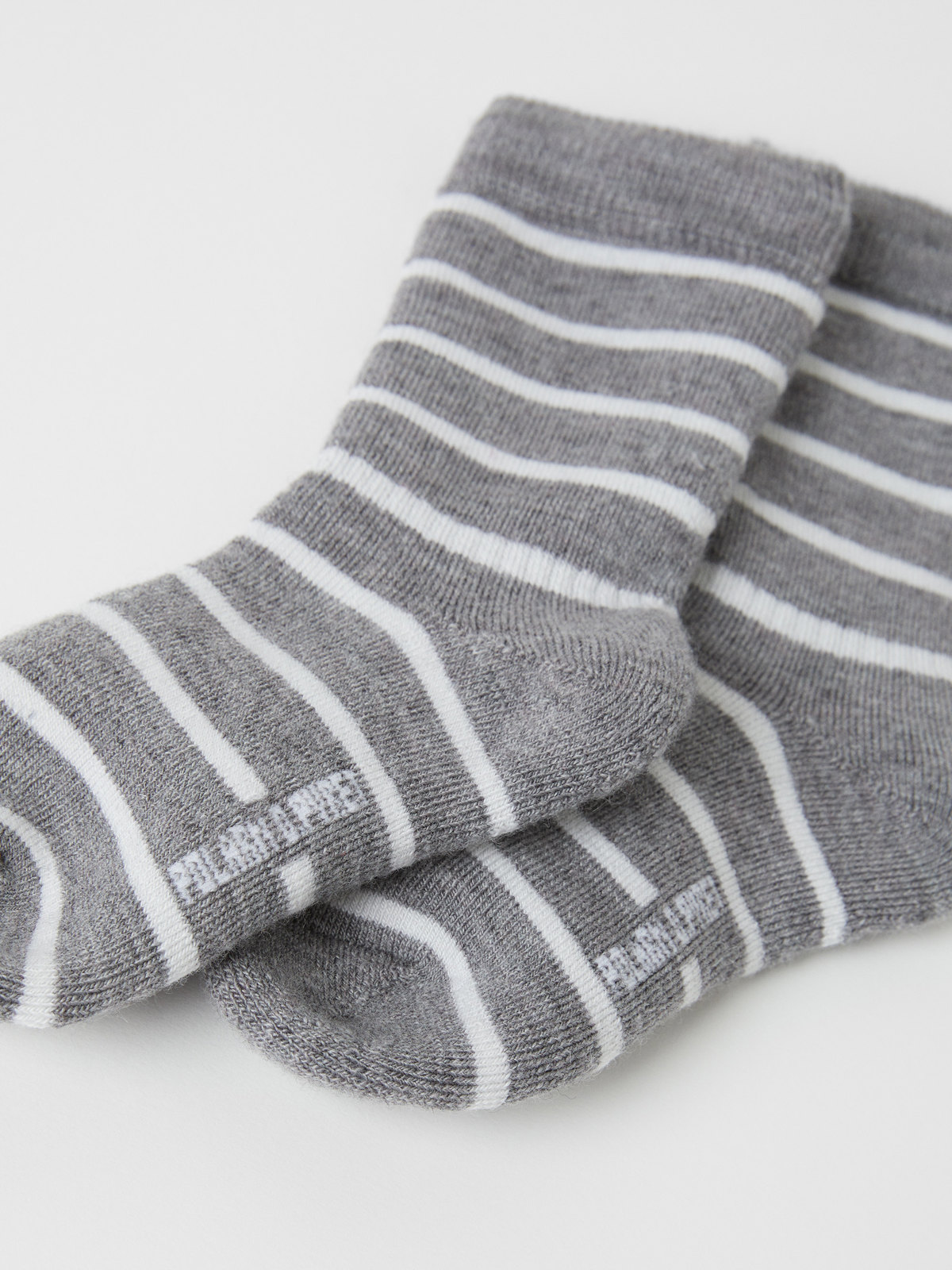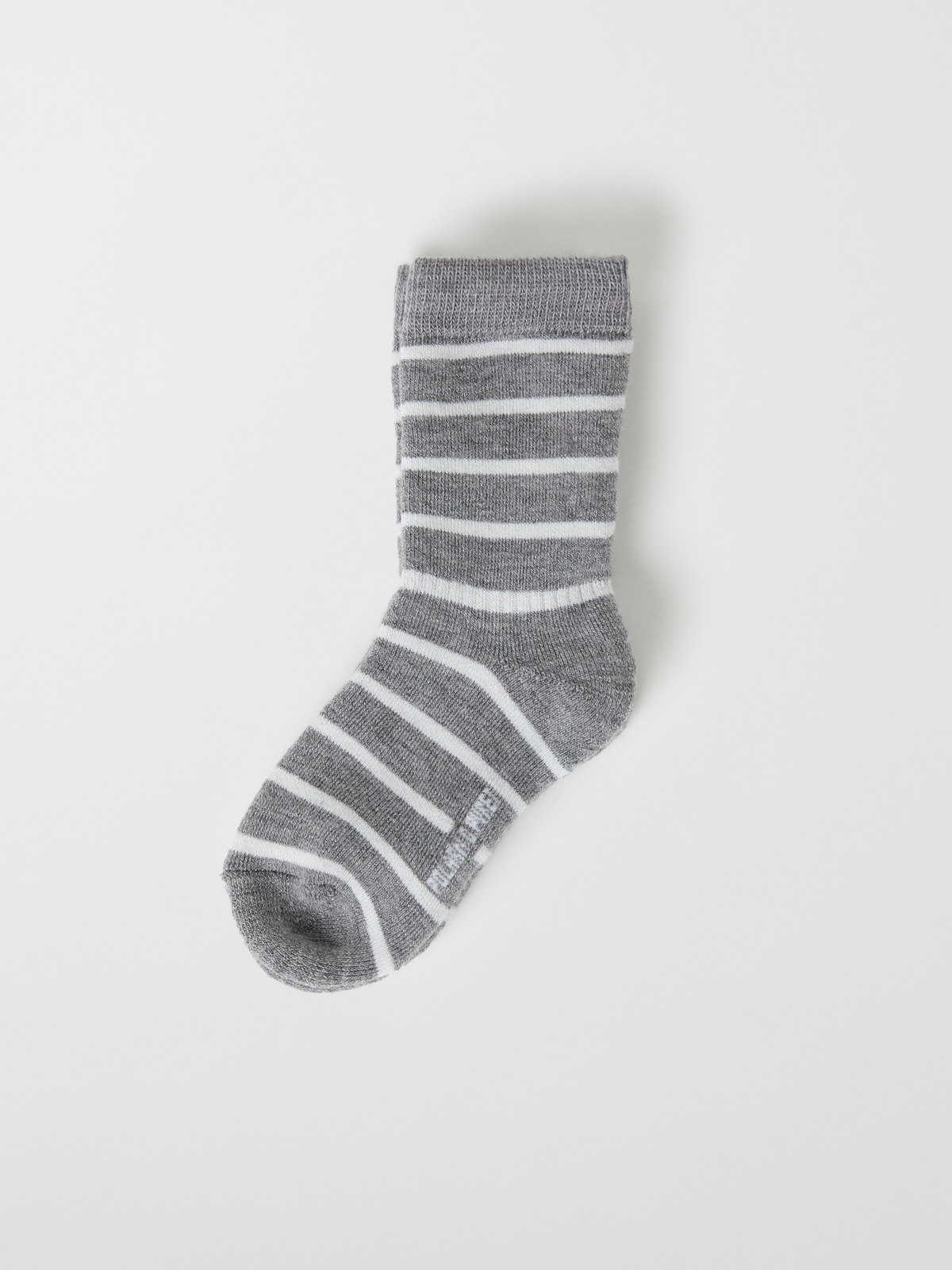 A pair of striped socks in soft wool terry that keeps little feet warm. The socks feature our classic stripes. The size is indicated on the arches. There is also space to write your child's name. So it's easy to keep things in order!