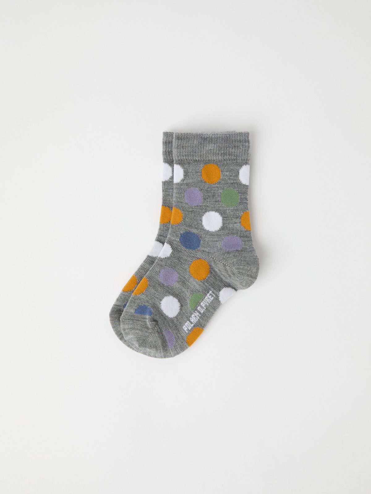 A pair of polka dot socks in thin merino wool that feel nice and soft on little feet. The size is indicated on the arches. You can also write your child’s name on them. So it’s easy to keep things in order!