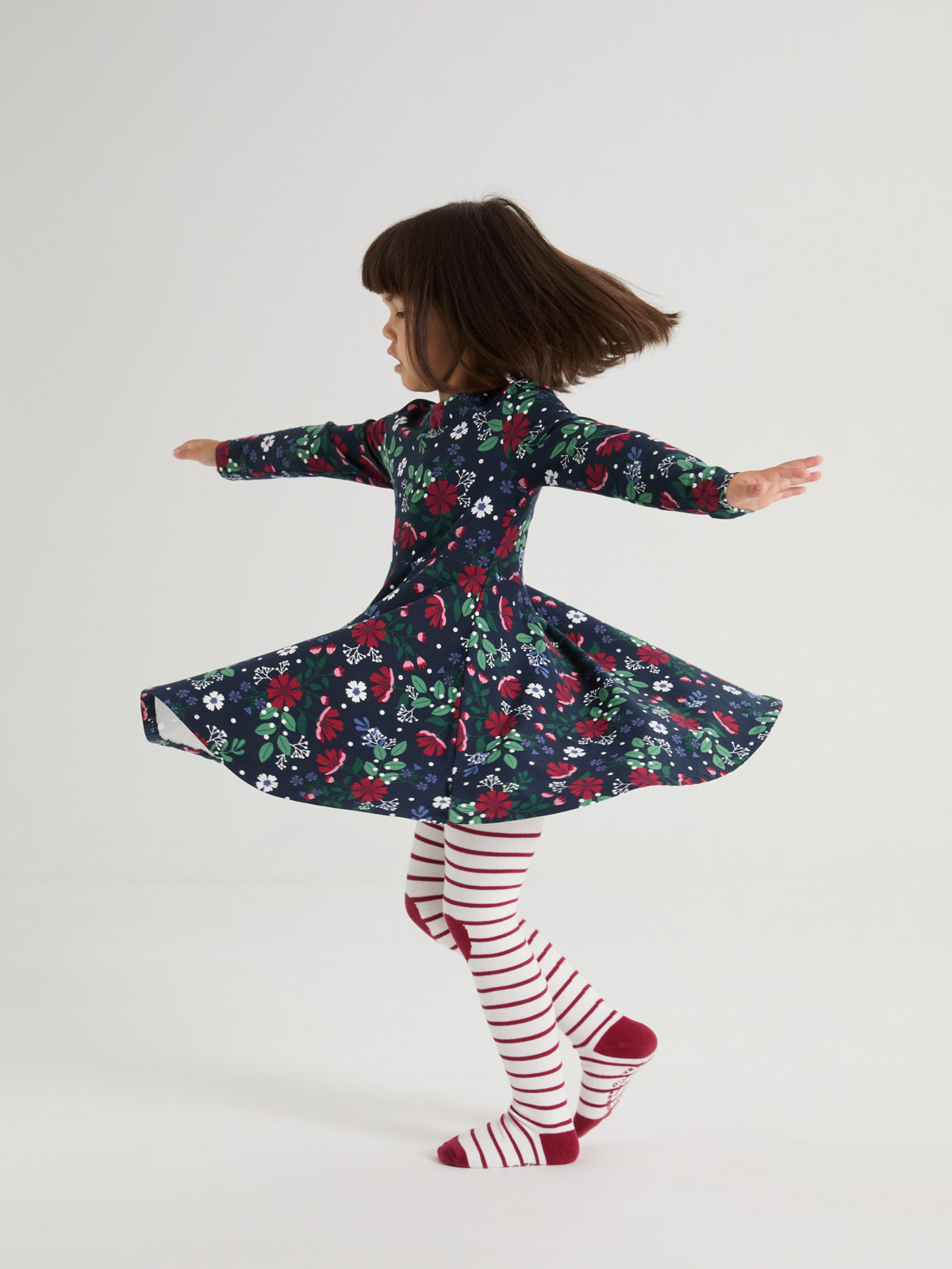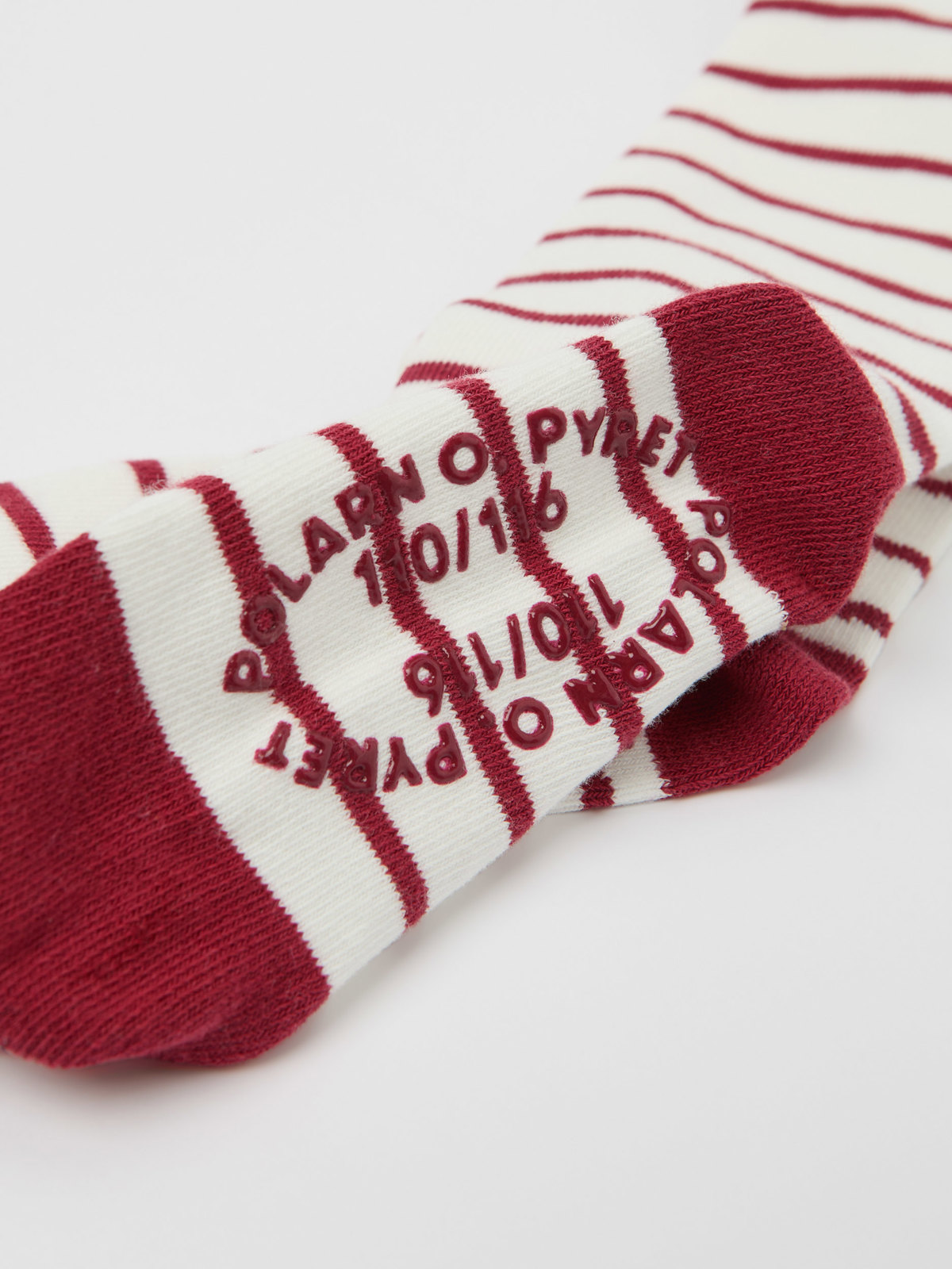 Knitted tights in soft organic cotton. The tights feature our classic stripes and red hearts on the knees.