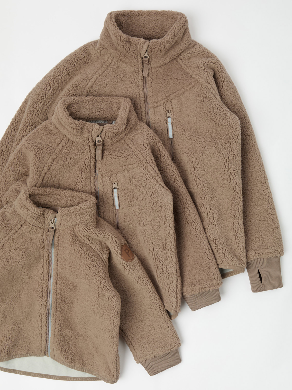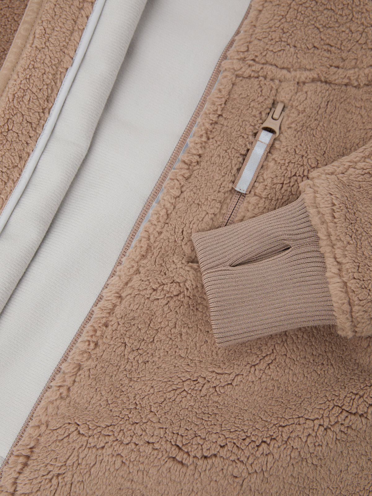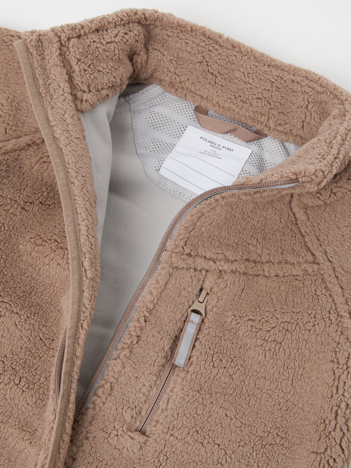 Soft and comfy pile fleece jacket in wind and waterproof material. A cozy go-to garment to keep your child warm and dry on cold spring and fall days.