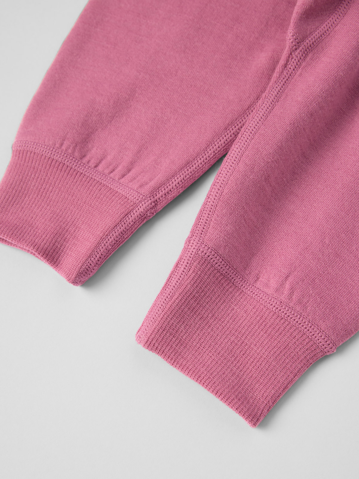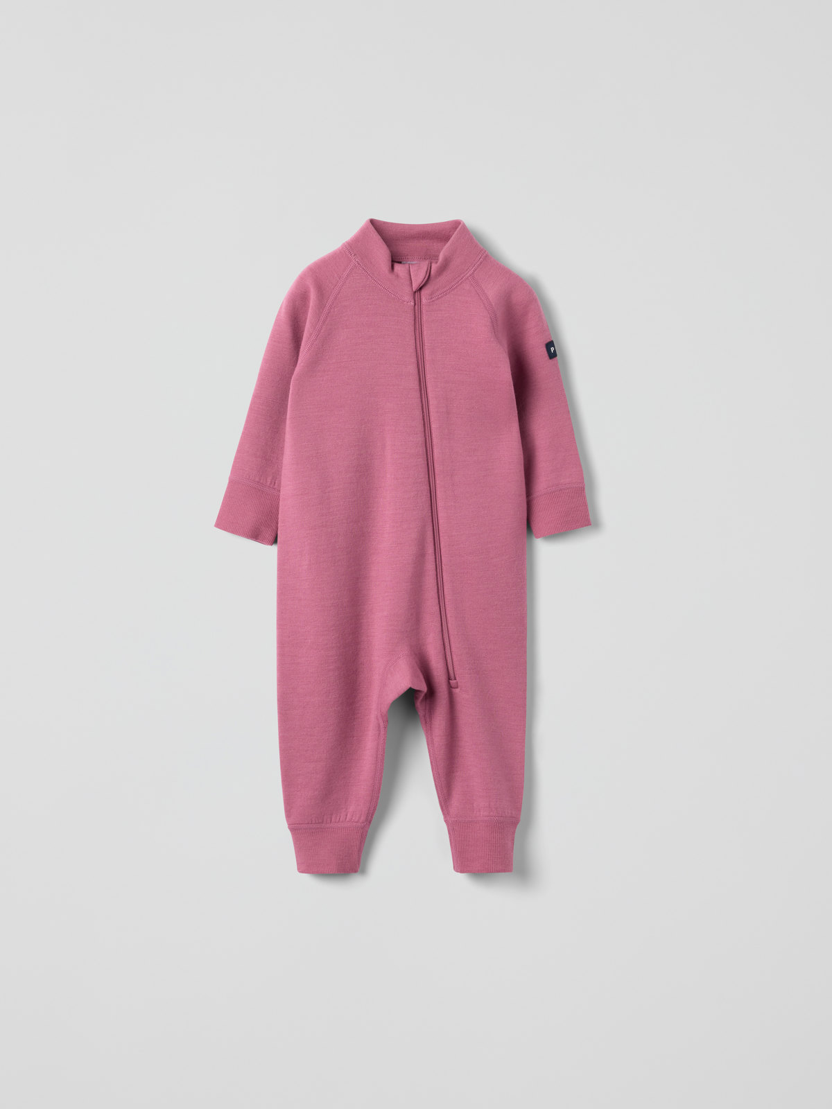 A warm all-in-one in soft and comfy merino wool terry that absorbs moisture, keeping your little one warm and dry. The terry keeps the air next to the body warm and the wool insulates while allowing the body to breath. The all-in-one has a long zippered closure at the front for easy dressing.