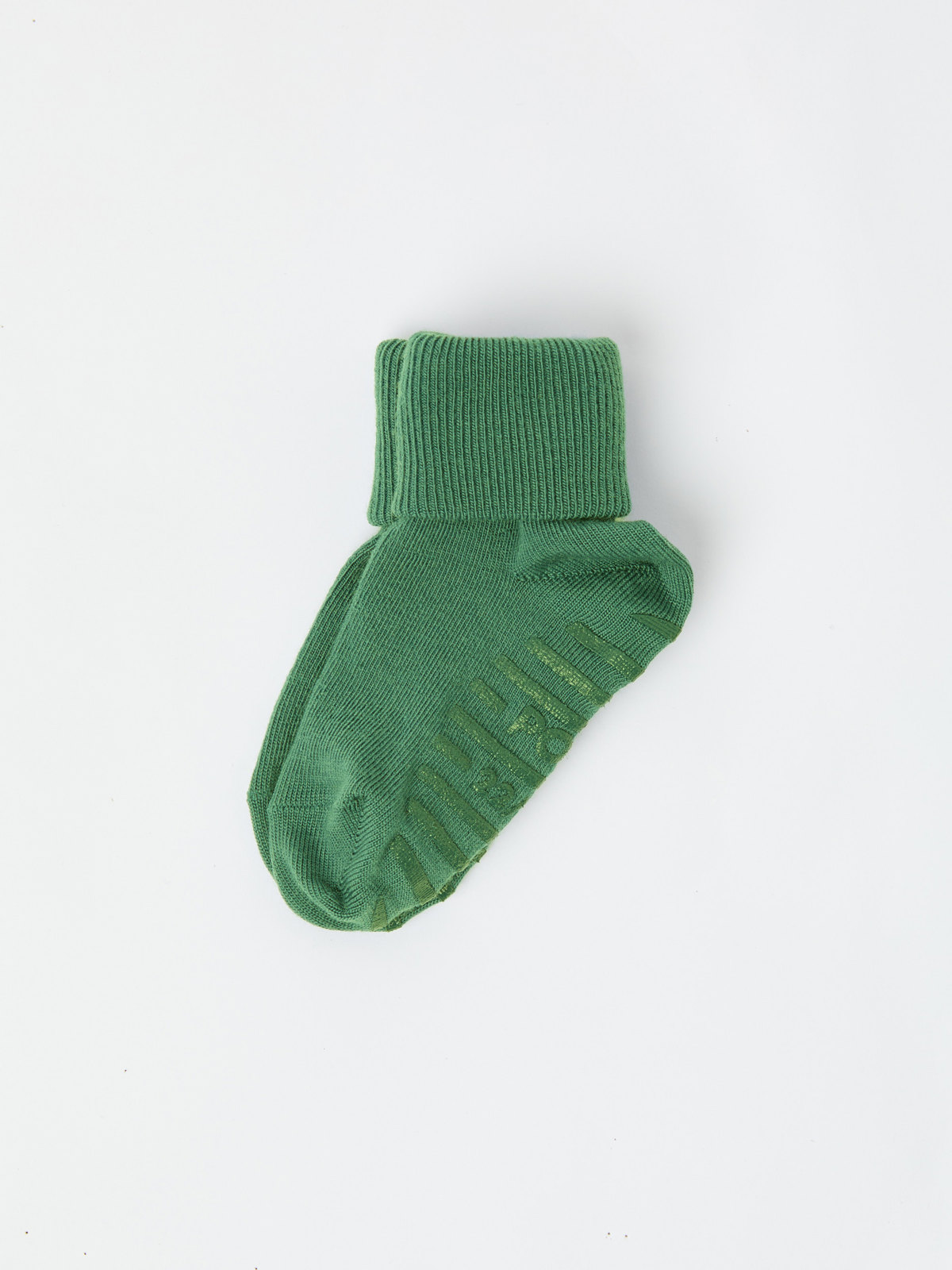 A pair of thin, comfy socks in soft merino wool that keeps little feet warm in the cold. The socks have anti-slip and cuffs that can be folded up or down, so they stay in place, even on busy feet.