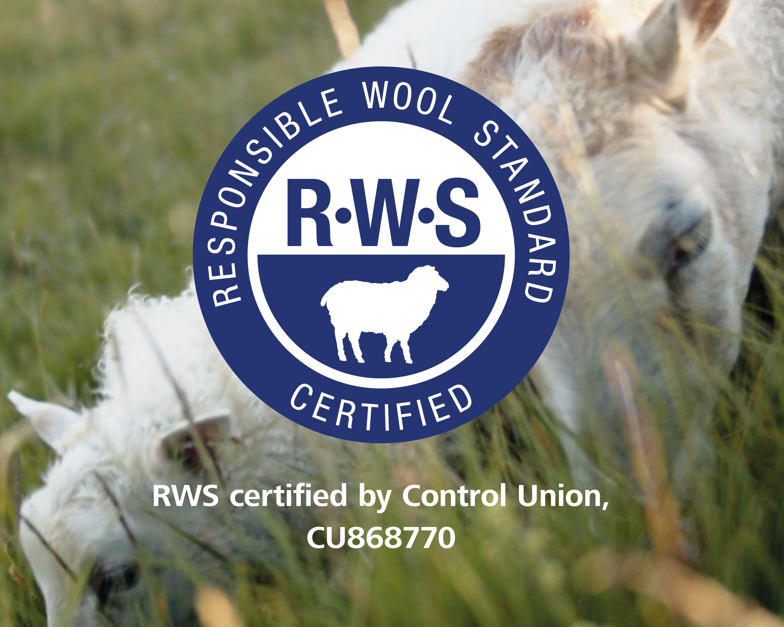 The Responsible Wool Standard (RWS) describes and certifies methods in wool fibre production to ensure animal welfare and farm land management, and tracks the certified material from farm to end product.